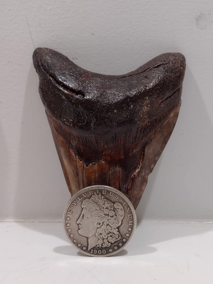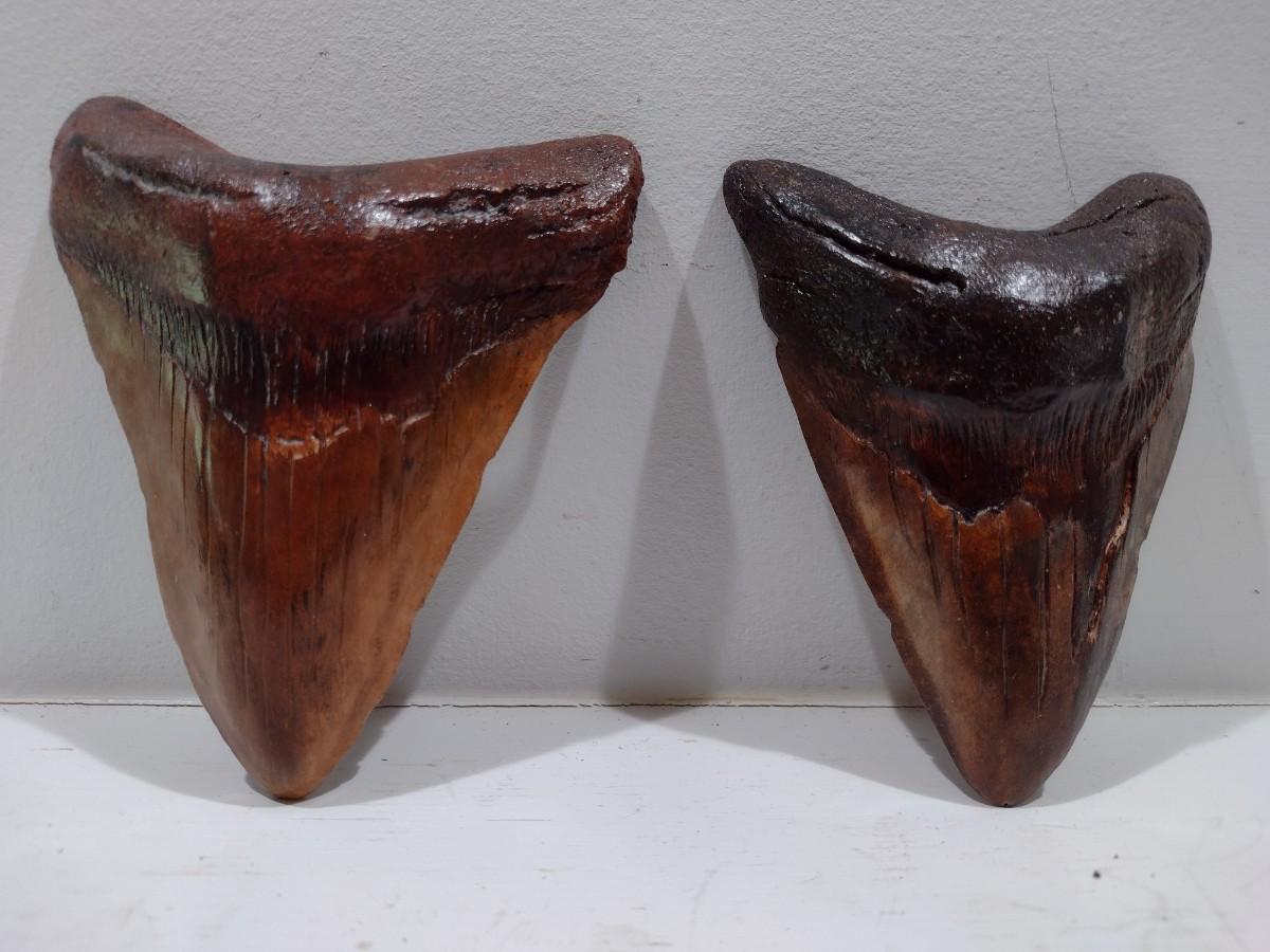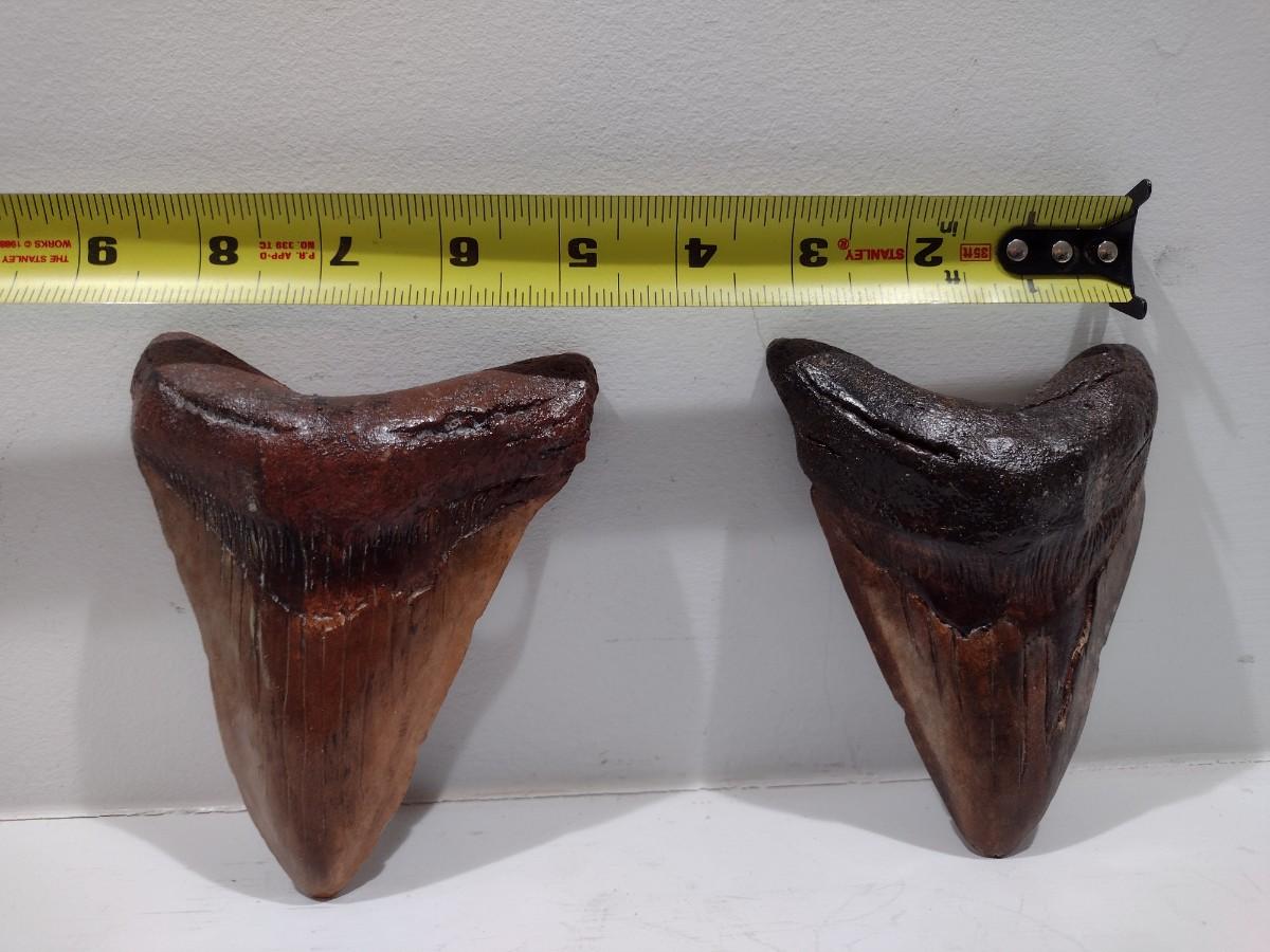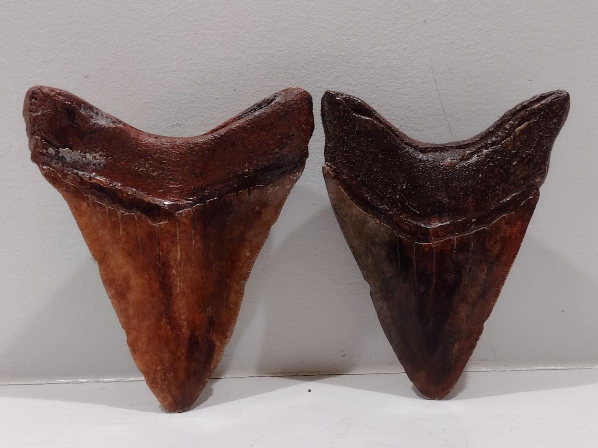 Pair of Megalodon Fossilized Shark's Teeth 4"