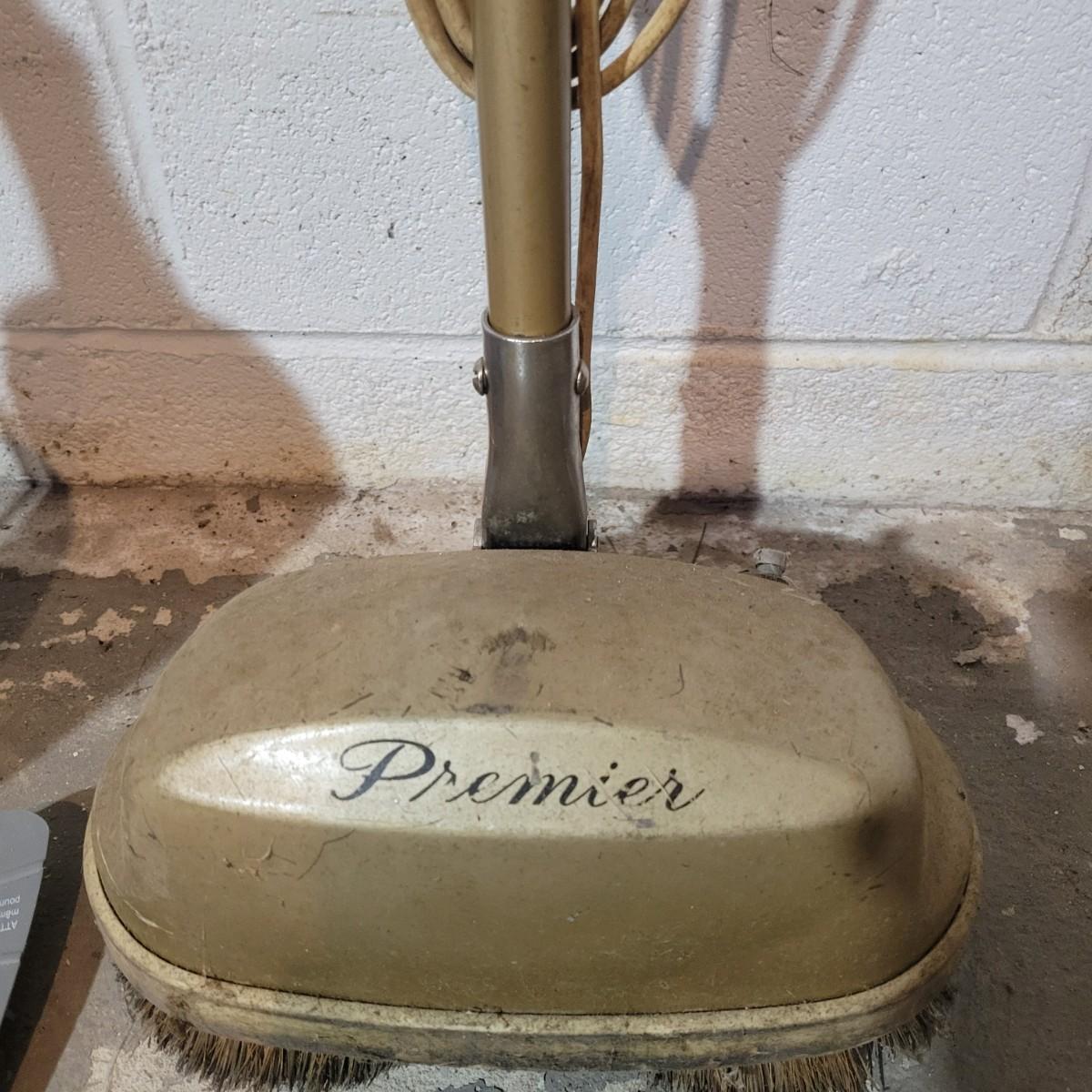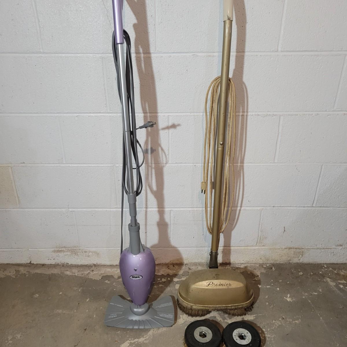 A Shark Euro Pro steamer and. a vintage Premier floor scrubber in good condition. The Premier is older and does show some age and use. The Shark is missing its water fill cap. Both items were tested and work. The Premier comes with an extra set of brushes and measures approximately 12" x 7.5" x 45" Local pickup only
