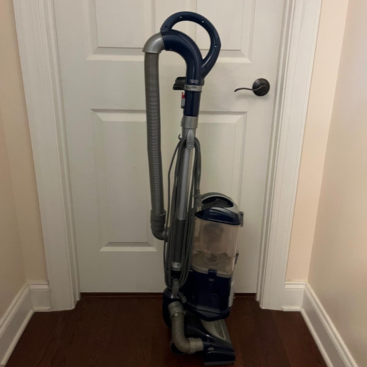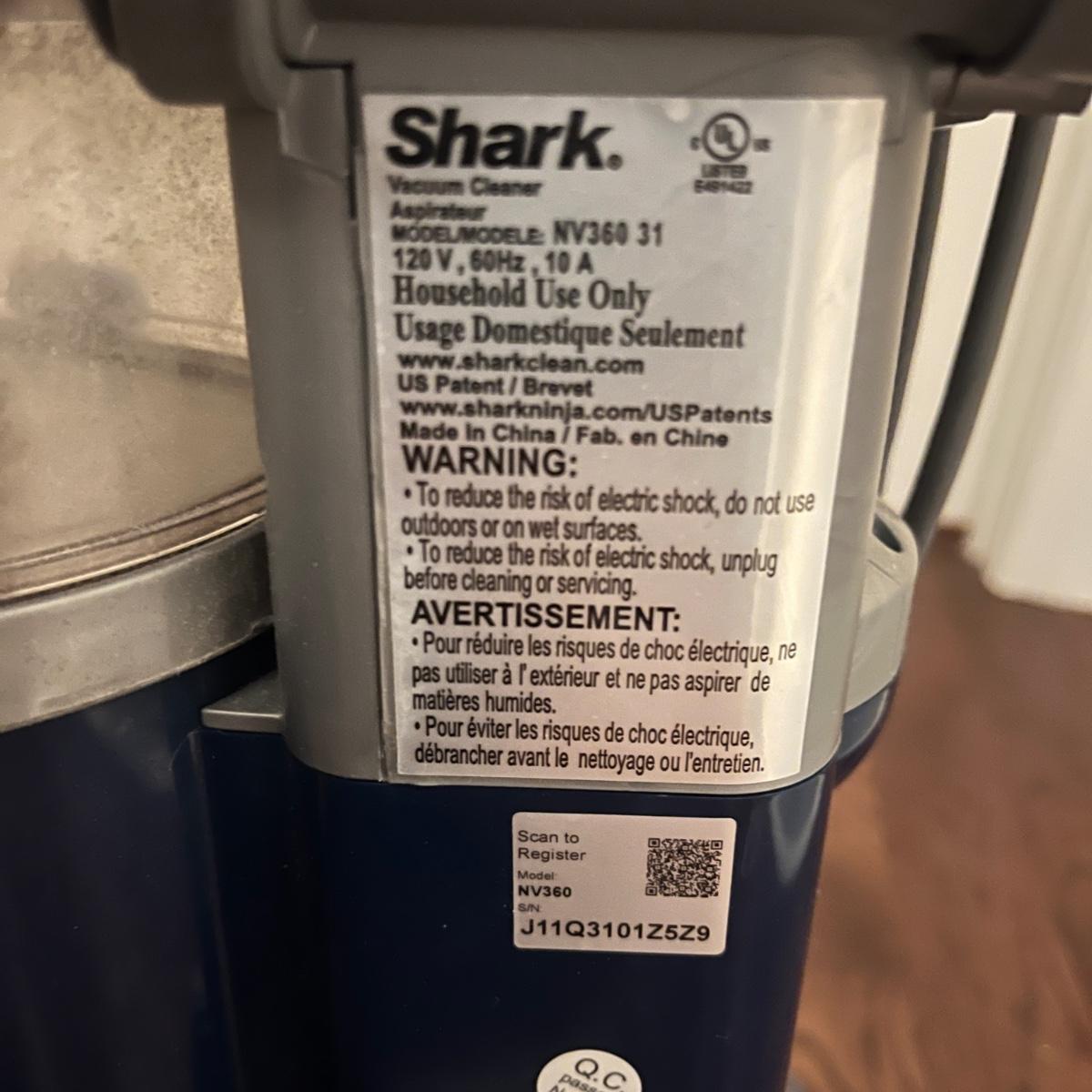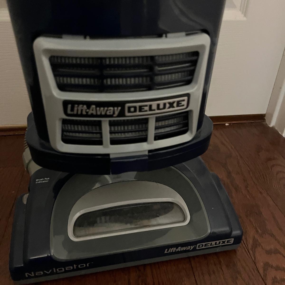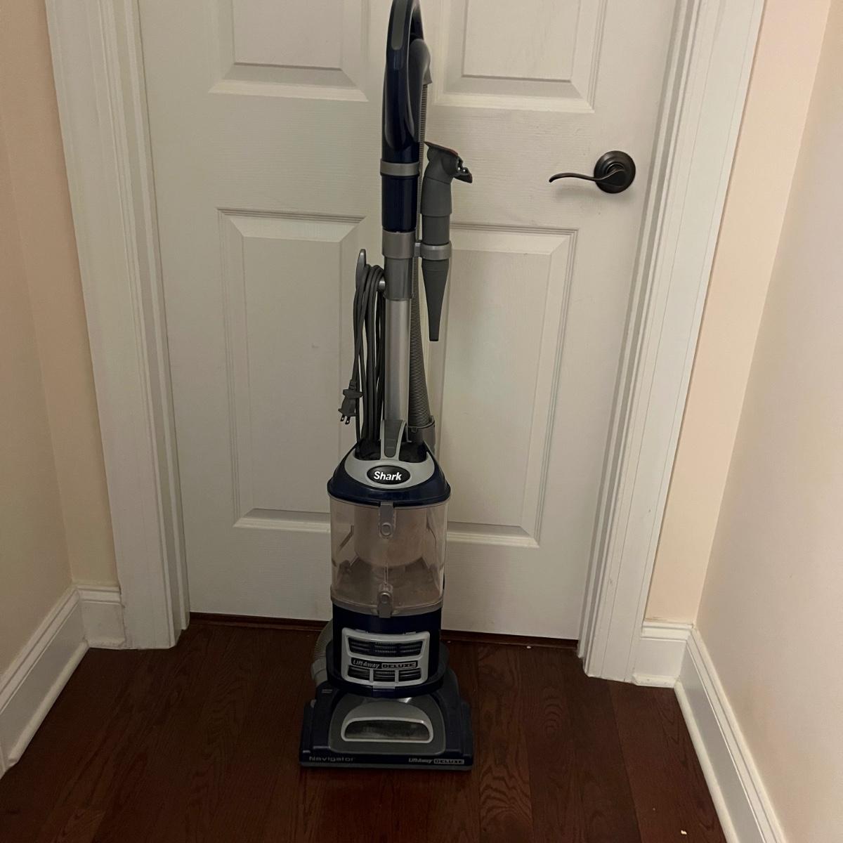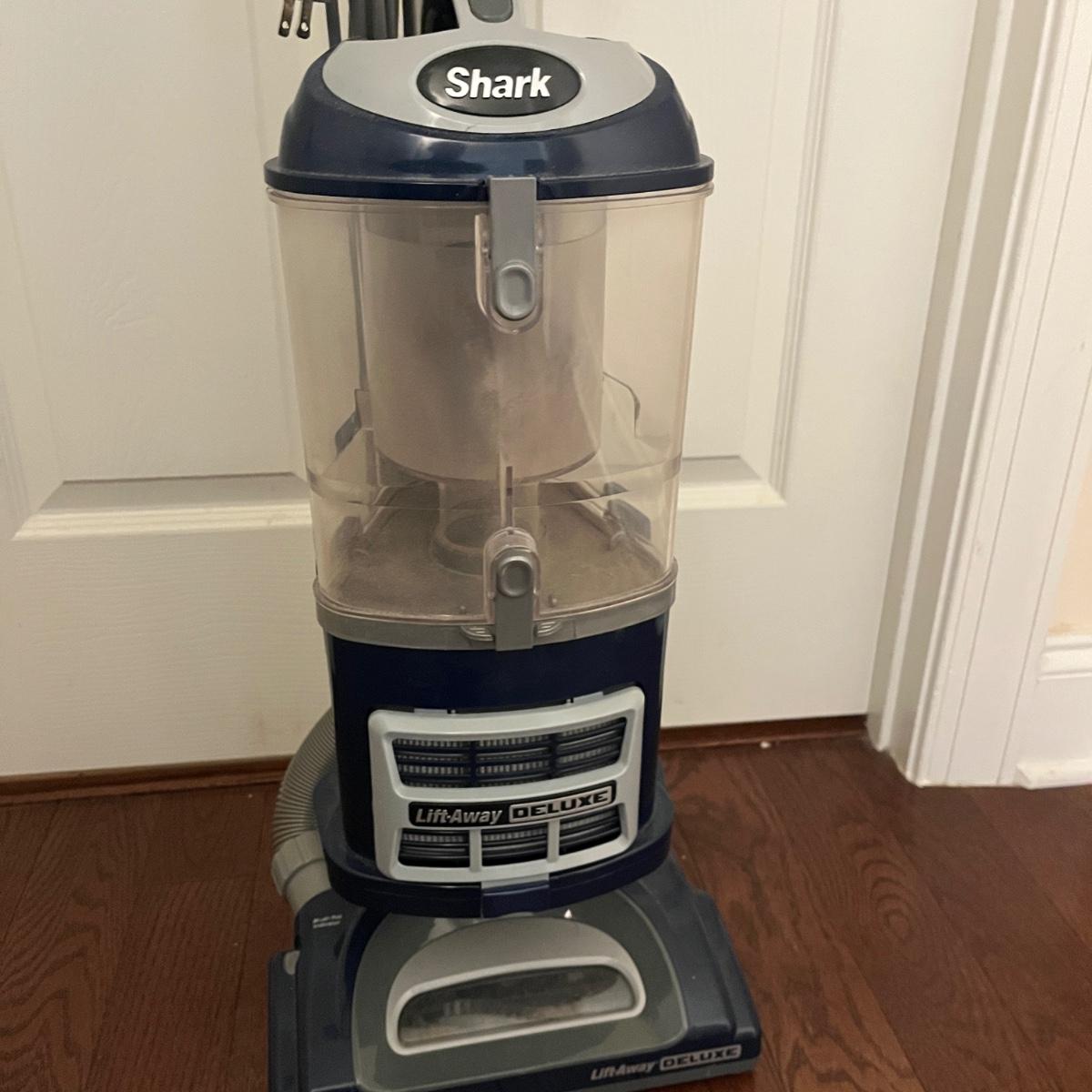 Lot includes a Shark Lift-Away Deluxe upright vacuum that powered on when plugged in.