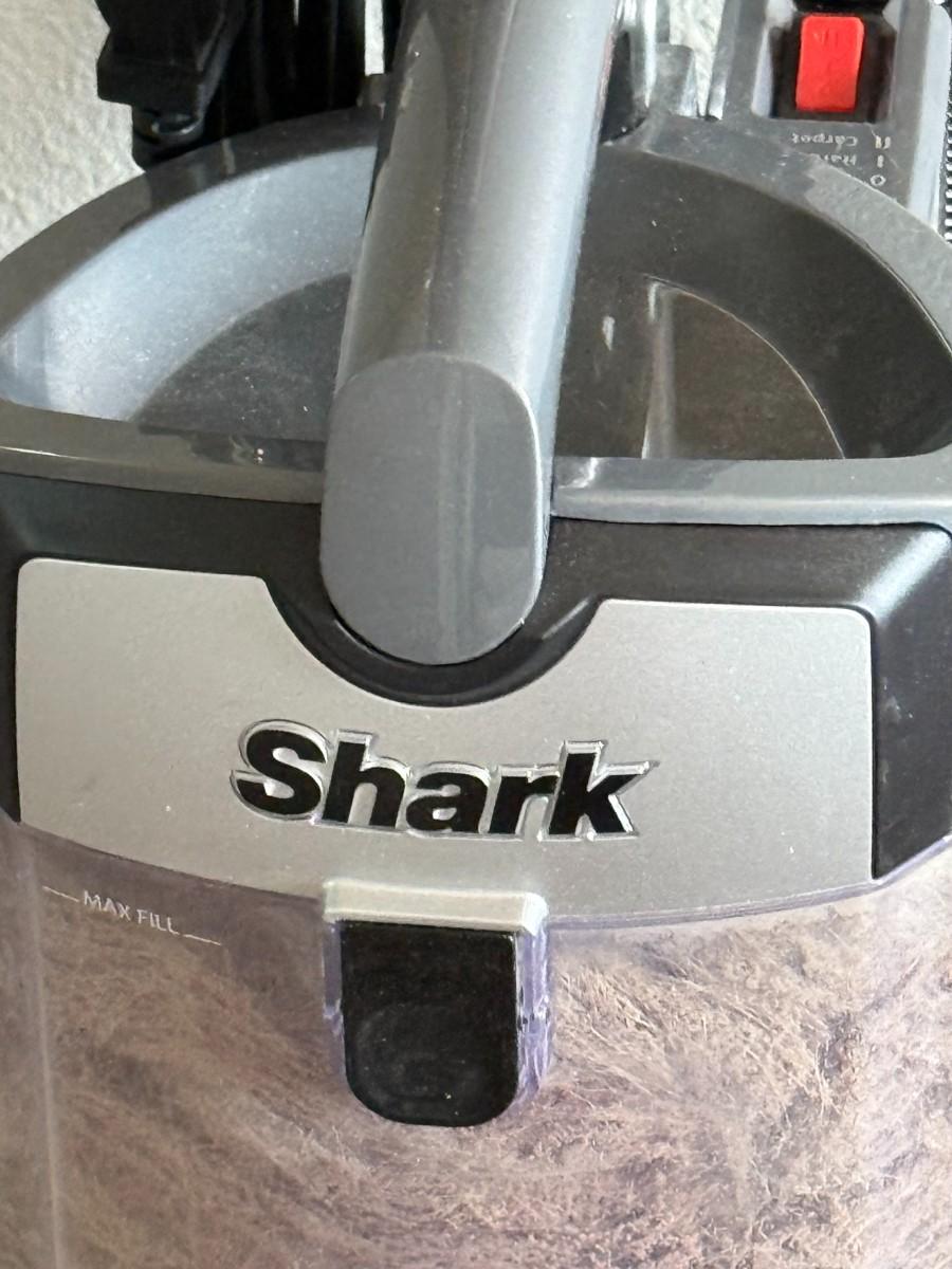 Shark upright vacuum cleaner with Lift-Away feature for handheld use. Great suction power and rotating PowerFins brush roll—ideal for deep cleaning carpet and hard floors. Lightly used and in working condition.