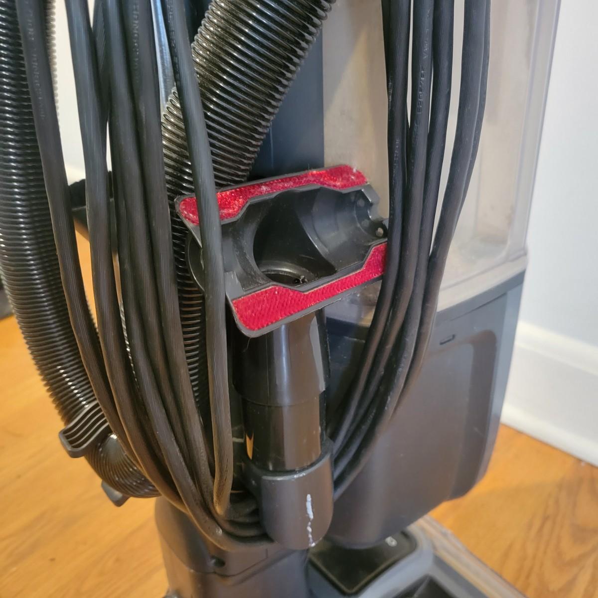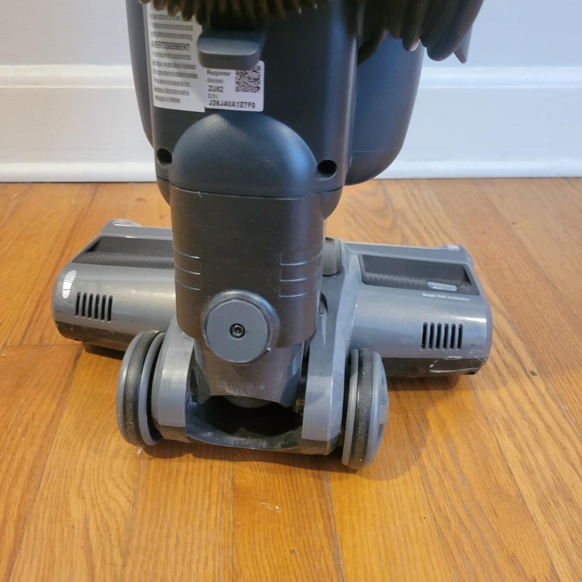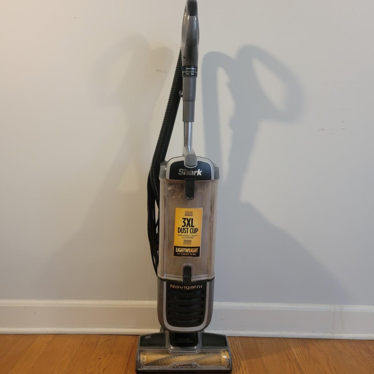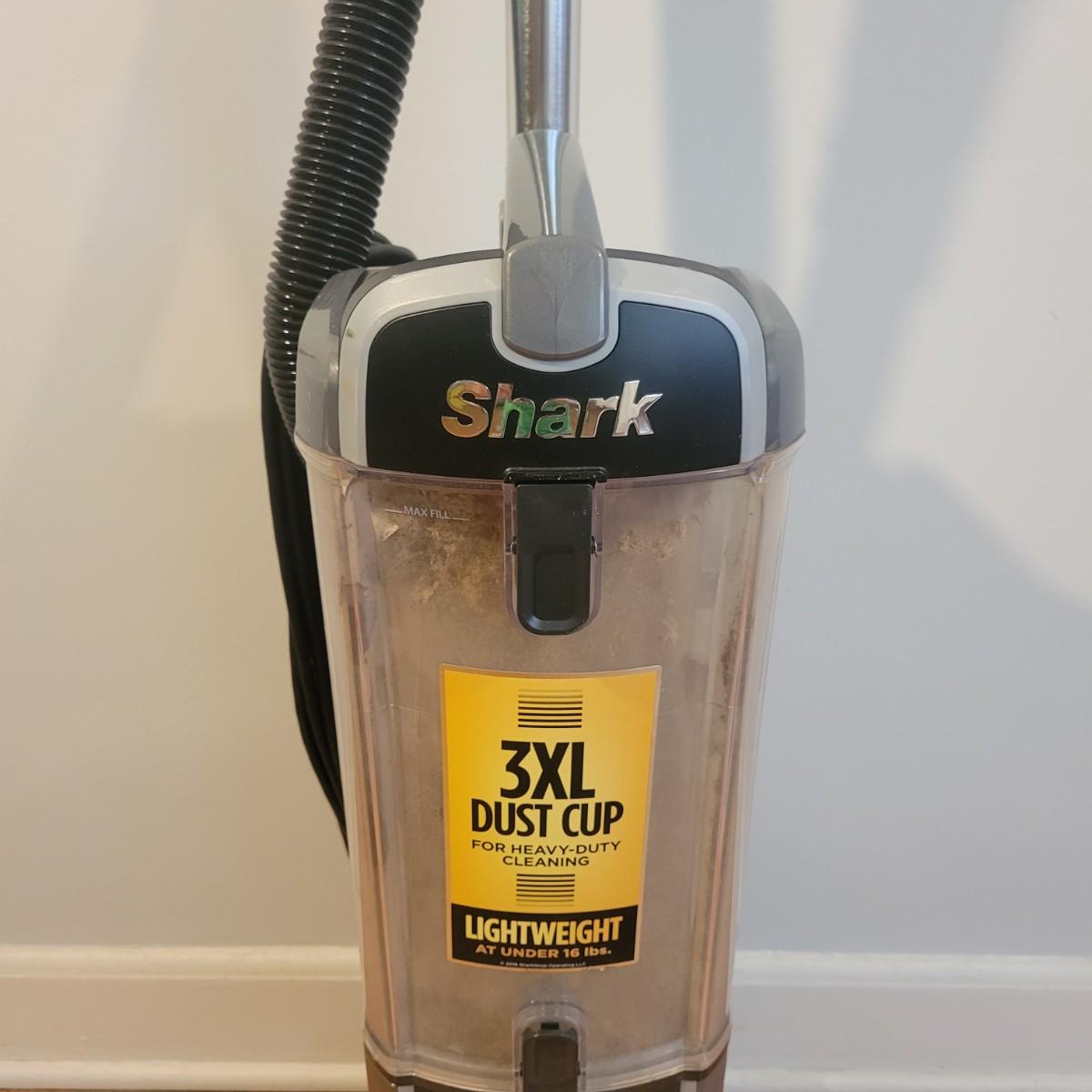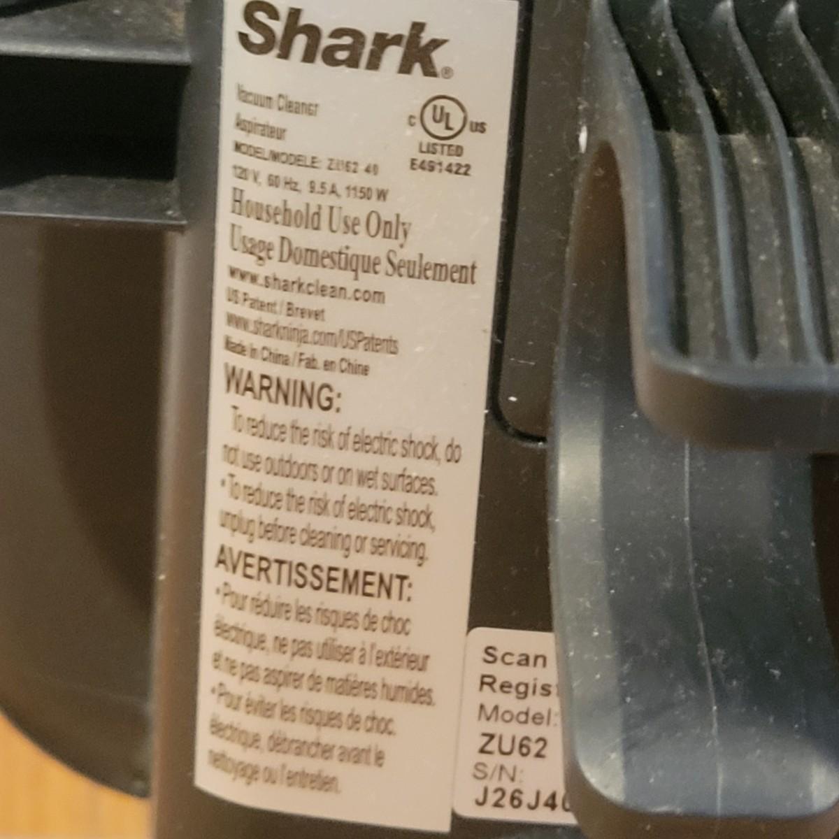 Shark navigator vacuum cleaner, Model ZU62, in good condition. Vacuum was tested and works. Features cleanable filter, bag-less canister and multiple attachments. Canister still has some debris in it. Measures approximately 12" x 11" x 46". Local pickup only