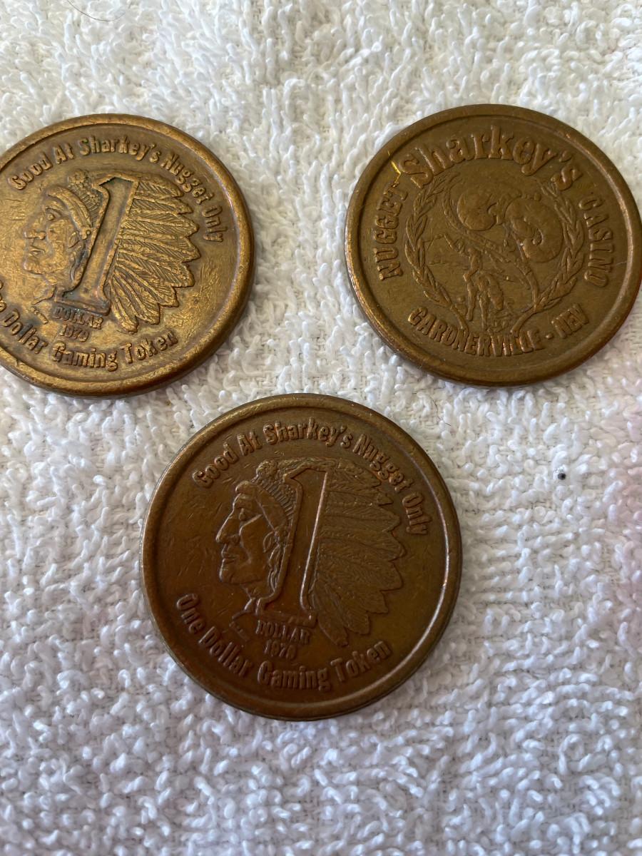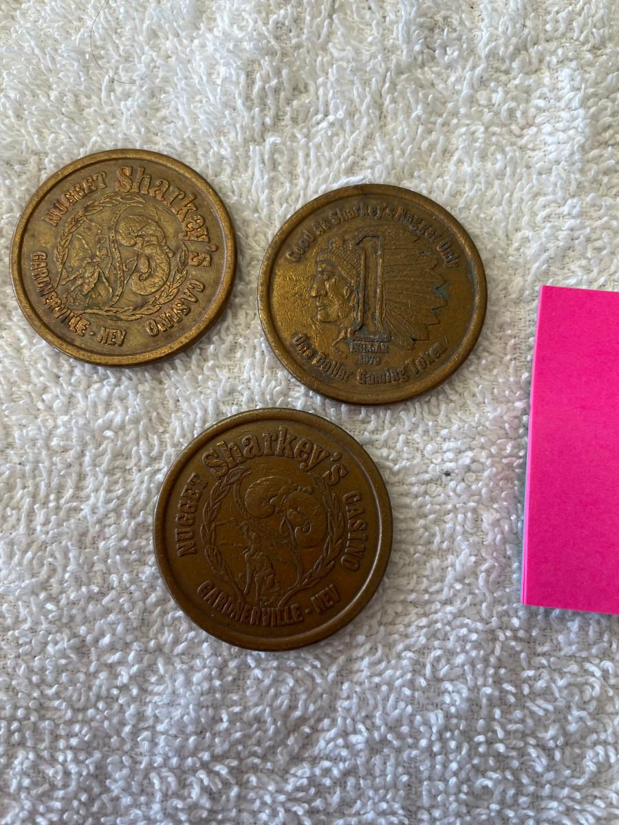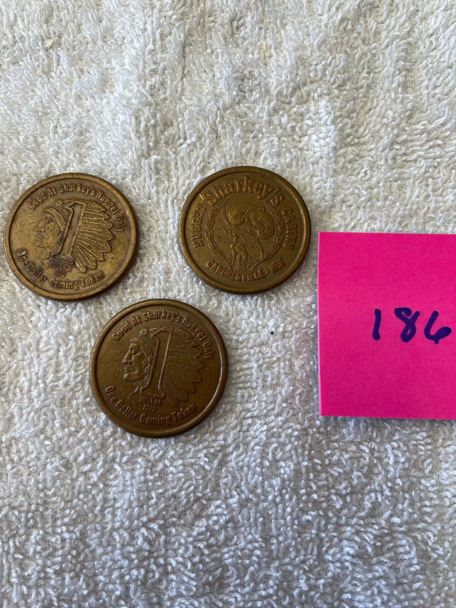 Sharkey's nugget Casino 3 $1 Slot tokens Indian Head