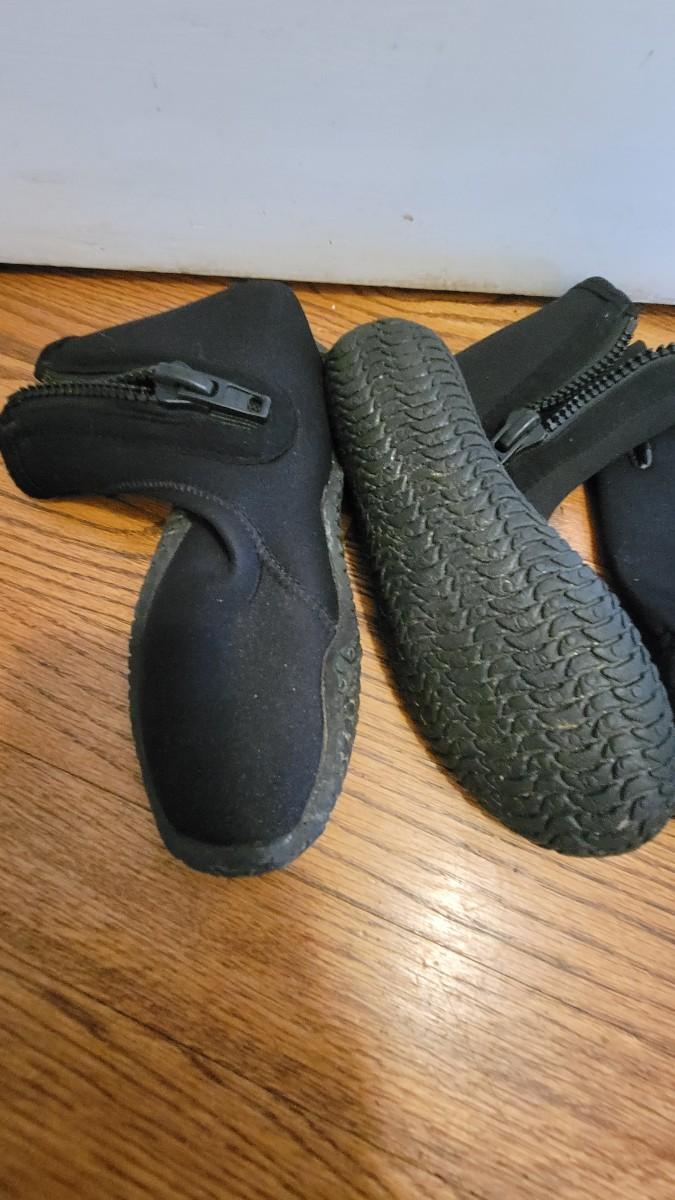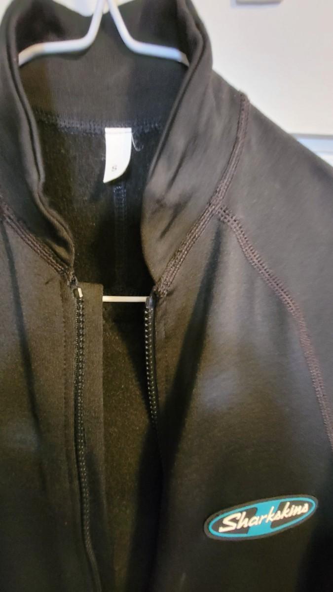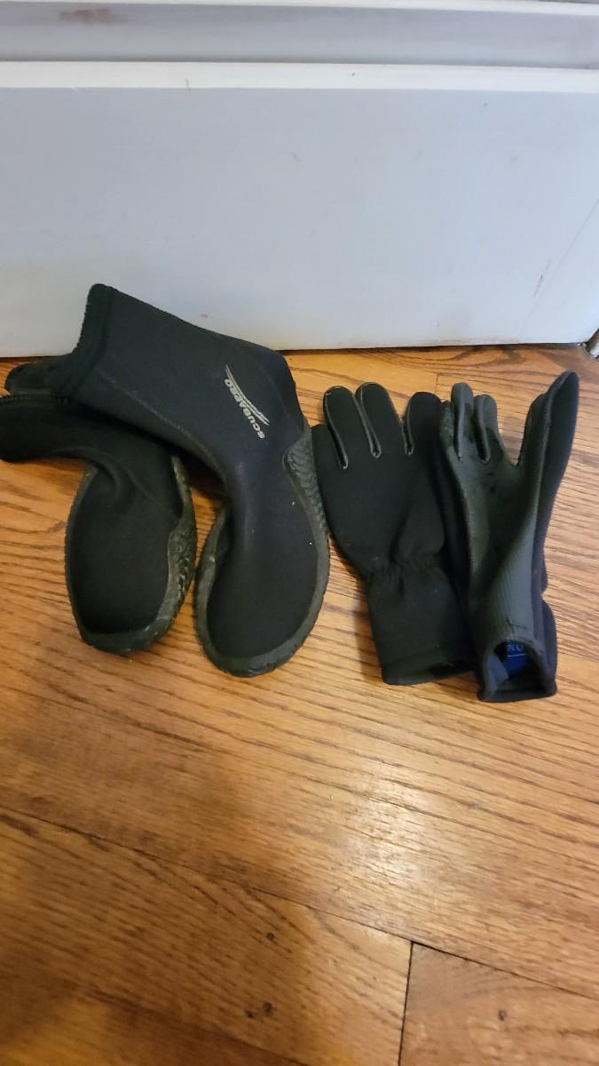 Sz SM skinsuit made by Sharkskins. Also includes a pair of sz M gloves that do show use and a pair of sz 4 booties. Local pickup only