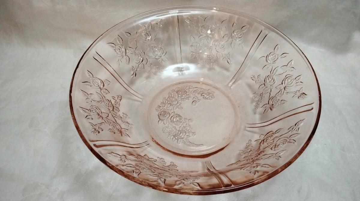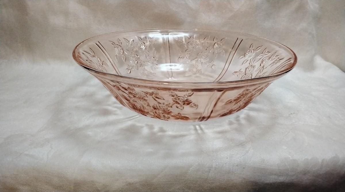 Sharon Depression Glass Bowl Federal Cabbage Roses Pink Serving 10"