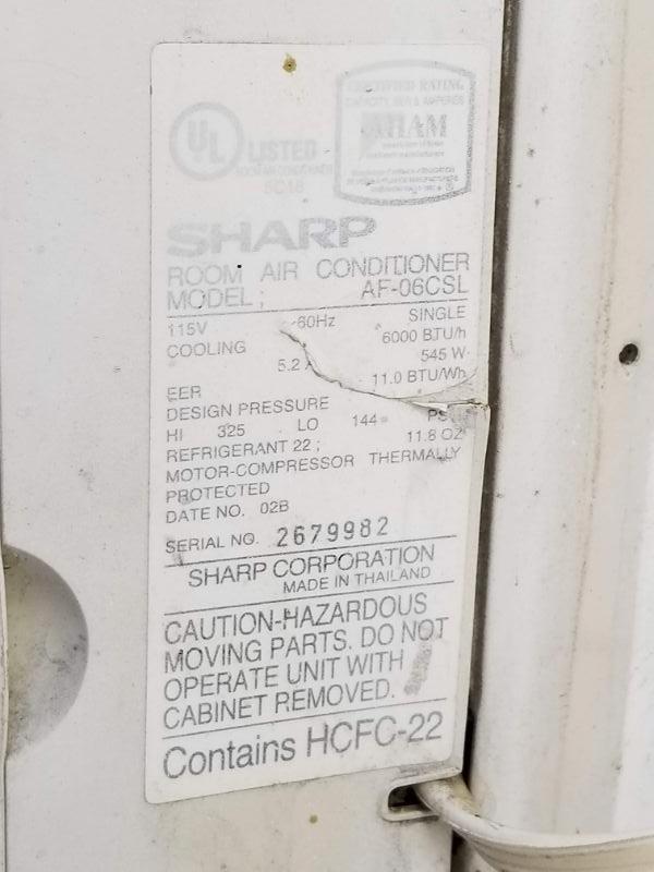 Sharp 6,000 BTU WIndow AC Unit, Tested & Works
