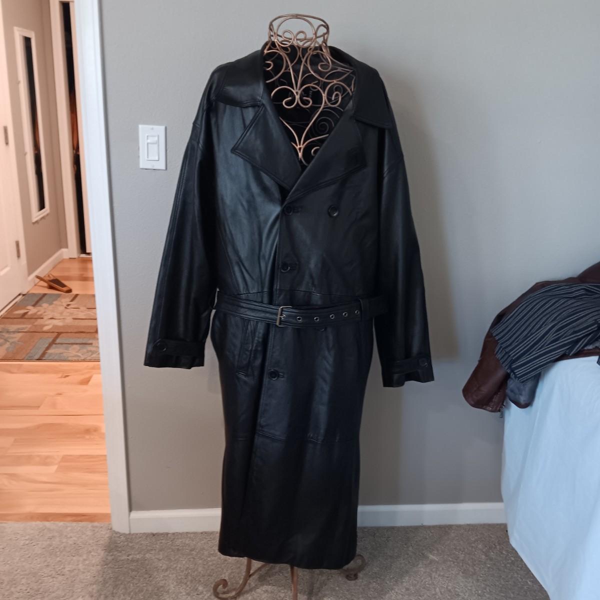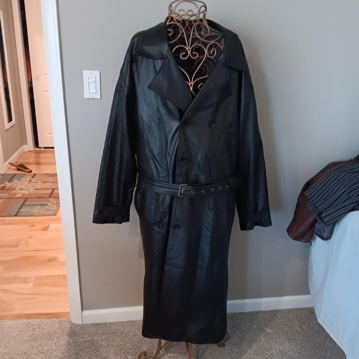 SHARP! ANJUM MEN'S GENUINE LEATHER TRENCH COAT (XL)