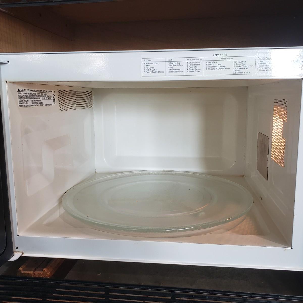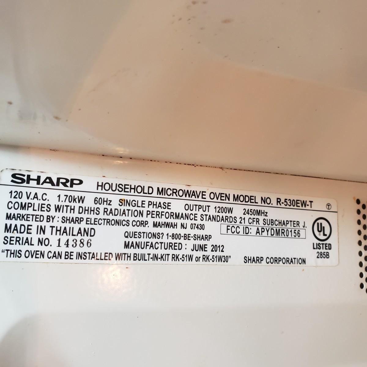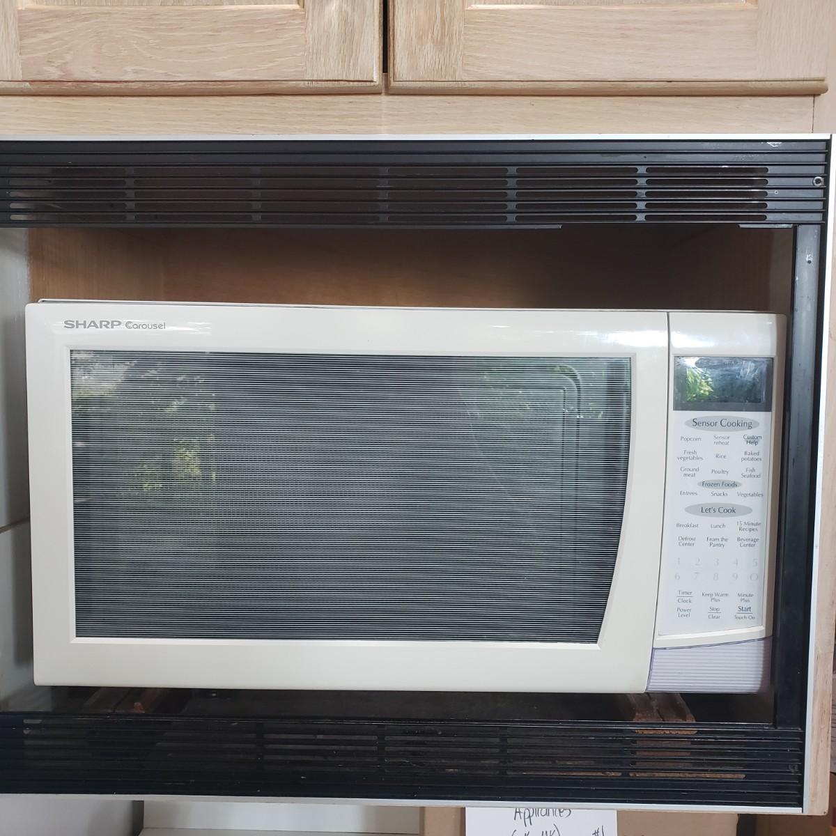 This Sharp carousel microwave measures 18" x 24" x 13"H. See pictures for model and serial number. The microwave powers on when plugged in.