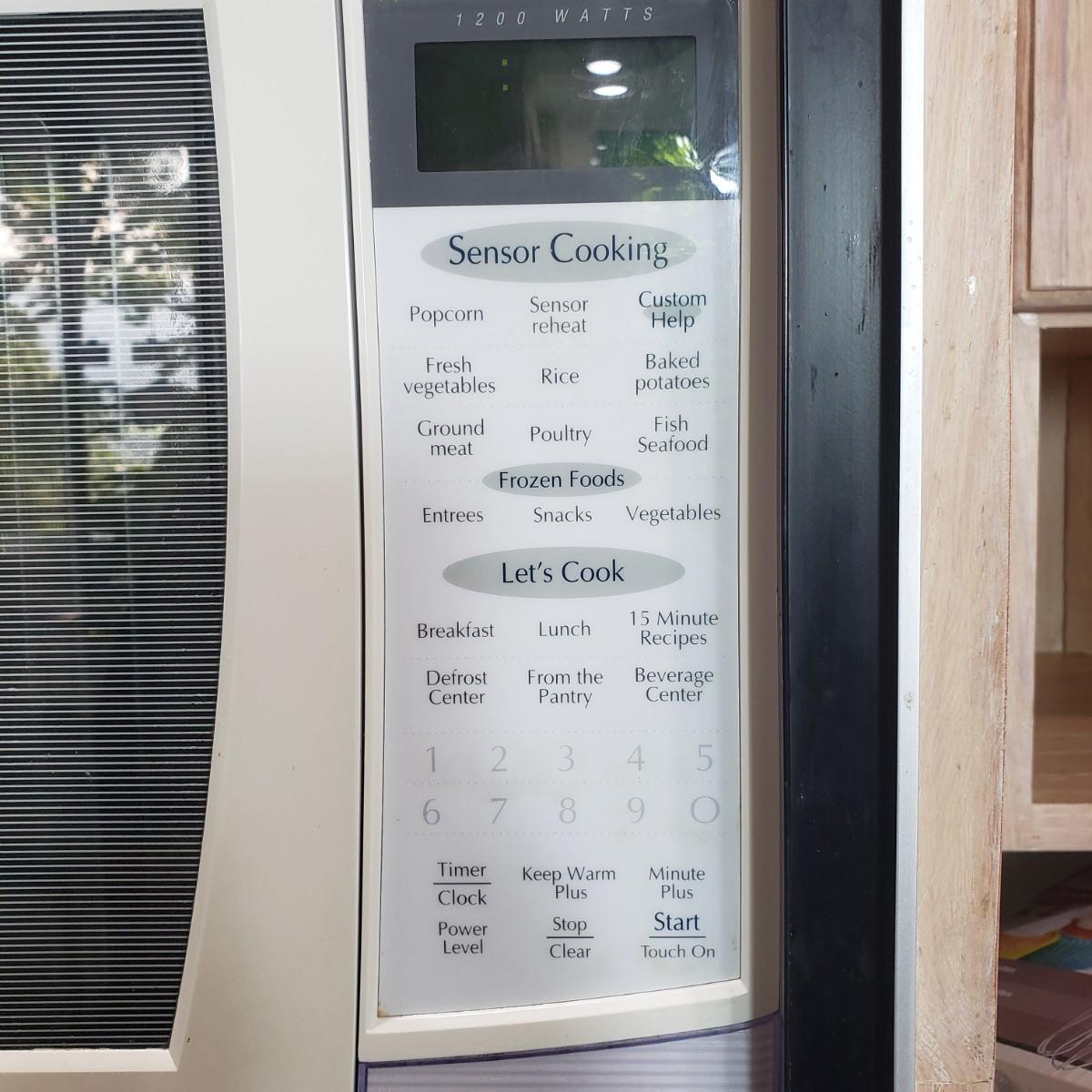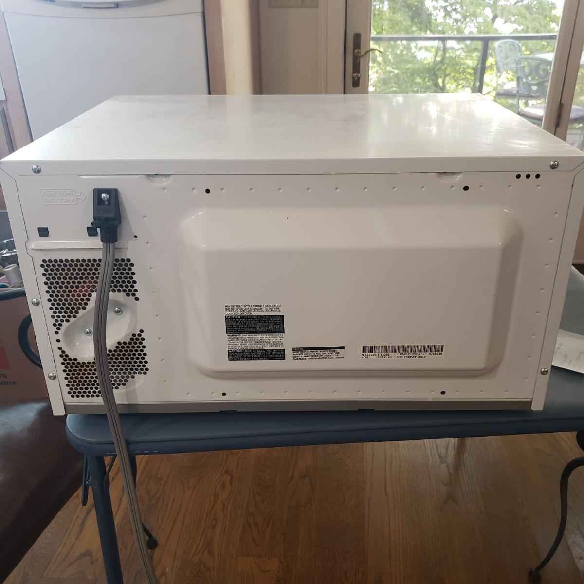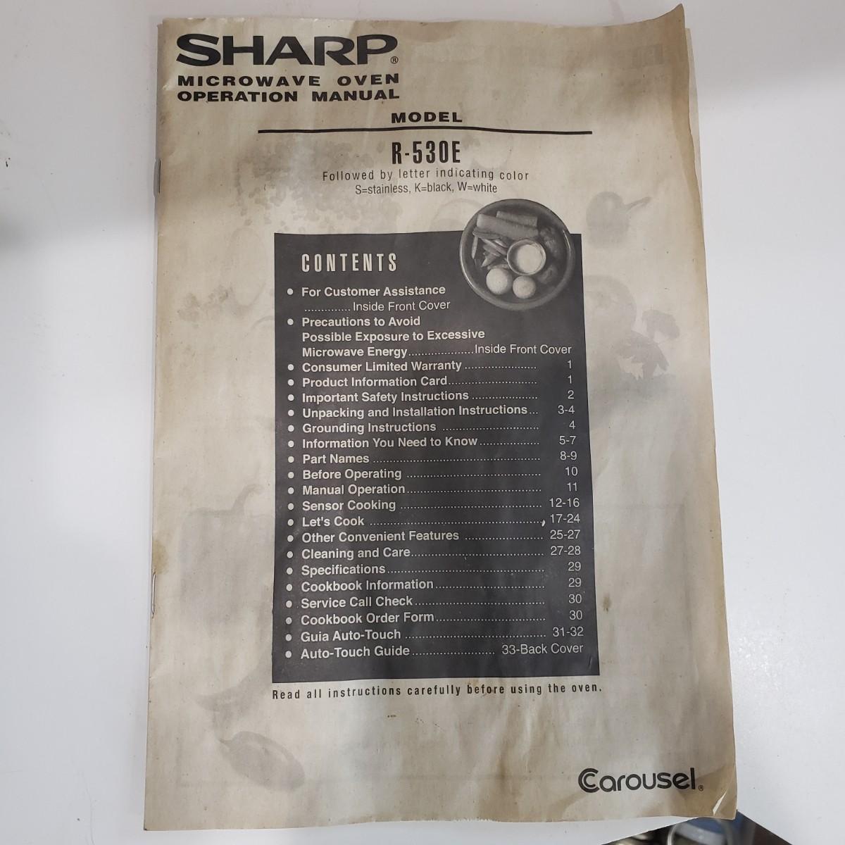 This Sharp carousel microwave measures 18" x 24" x 13"H. See pictures for model and serial number. The microwave powers on when plugged in.