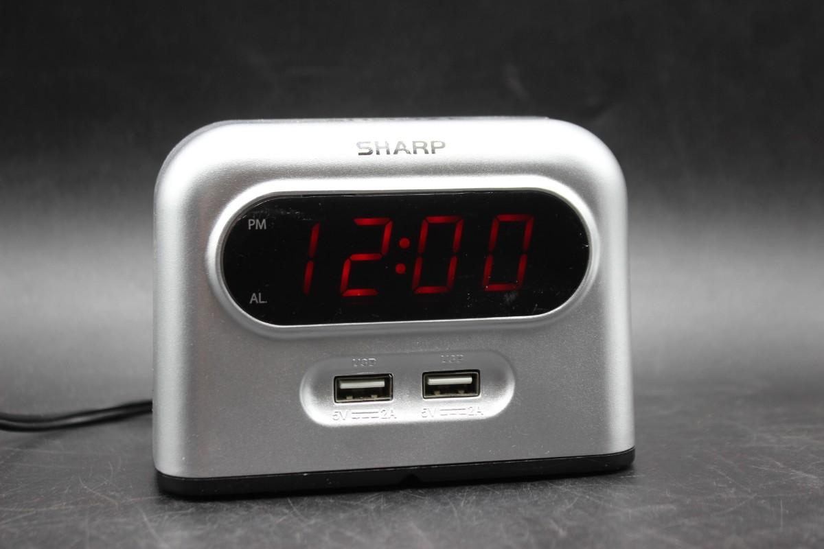Sharp Digital Alarm Clock with USB Ports. Works.