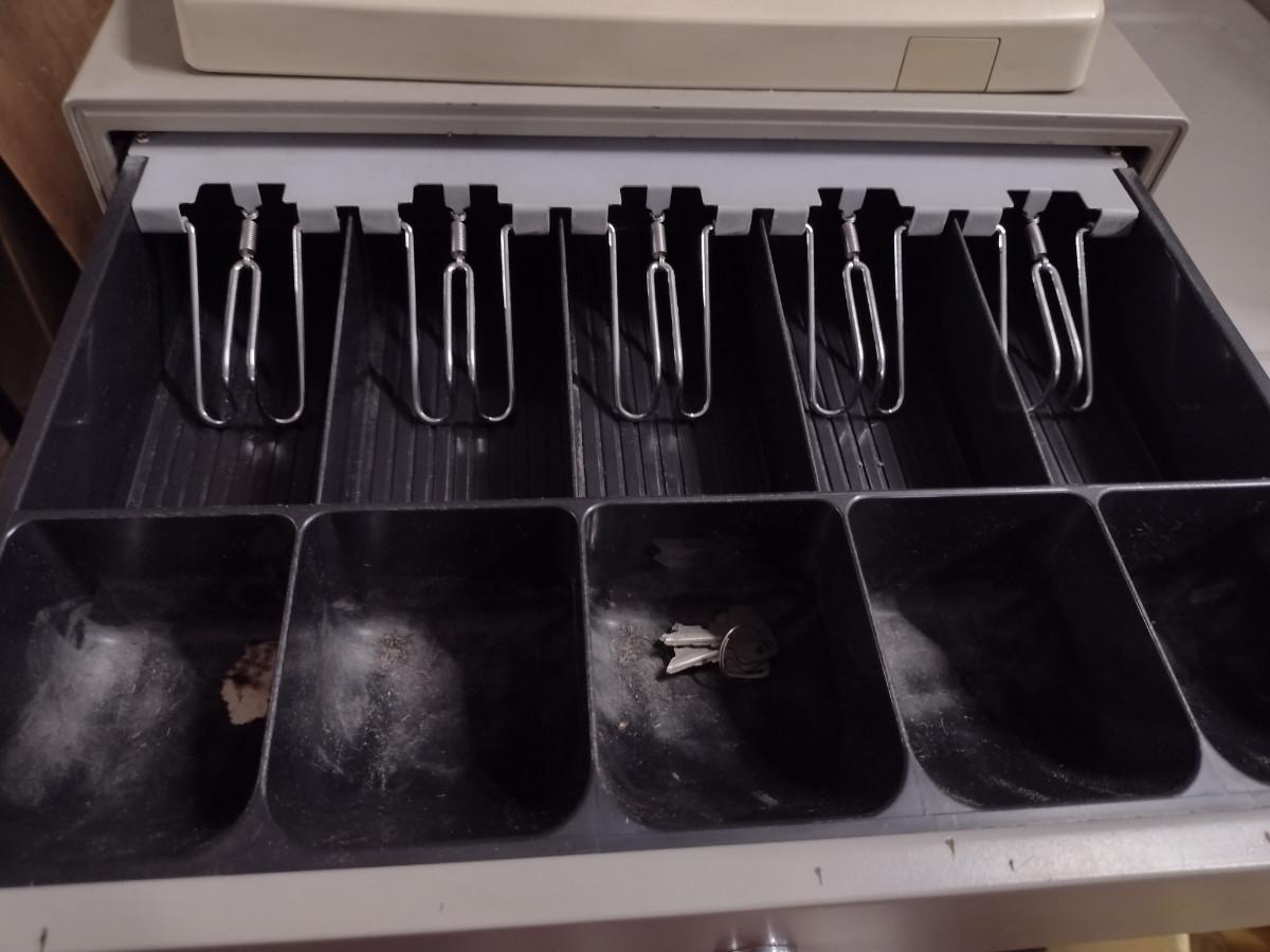 Sharp Electronic Cash Register- Model ER-2386S. Item comes with manual and keys. Item powers on.