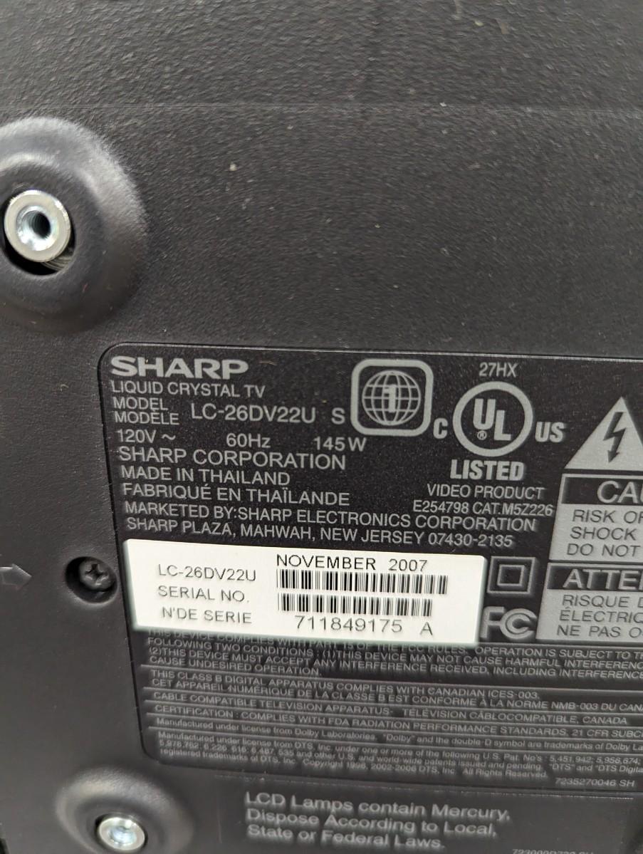 Sharp LC26DV22U 26-Inch LCD TV with Built-In DVD Player