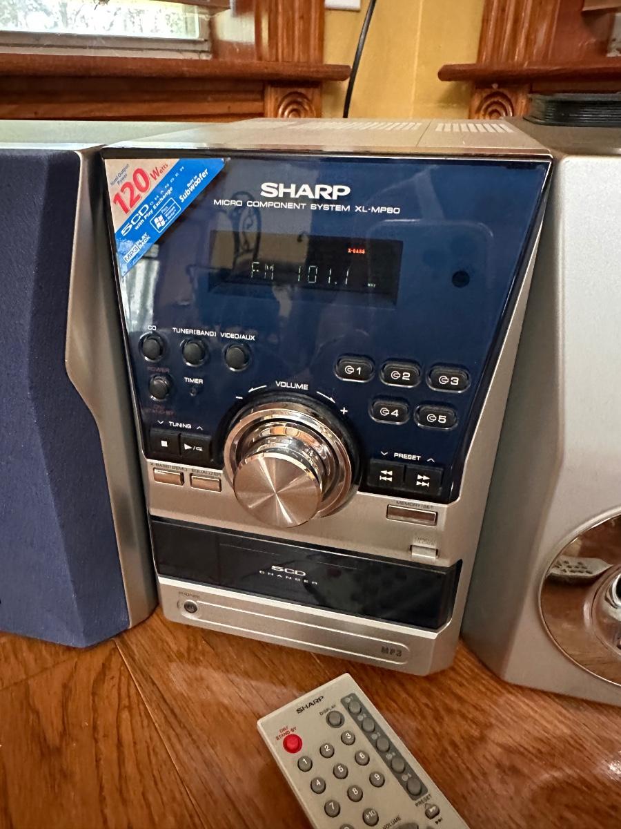4 pieces: receiver with tuner and 5 cd player, 2 speakers and a subwoofer ~ includes remote