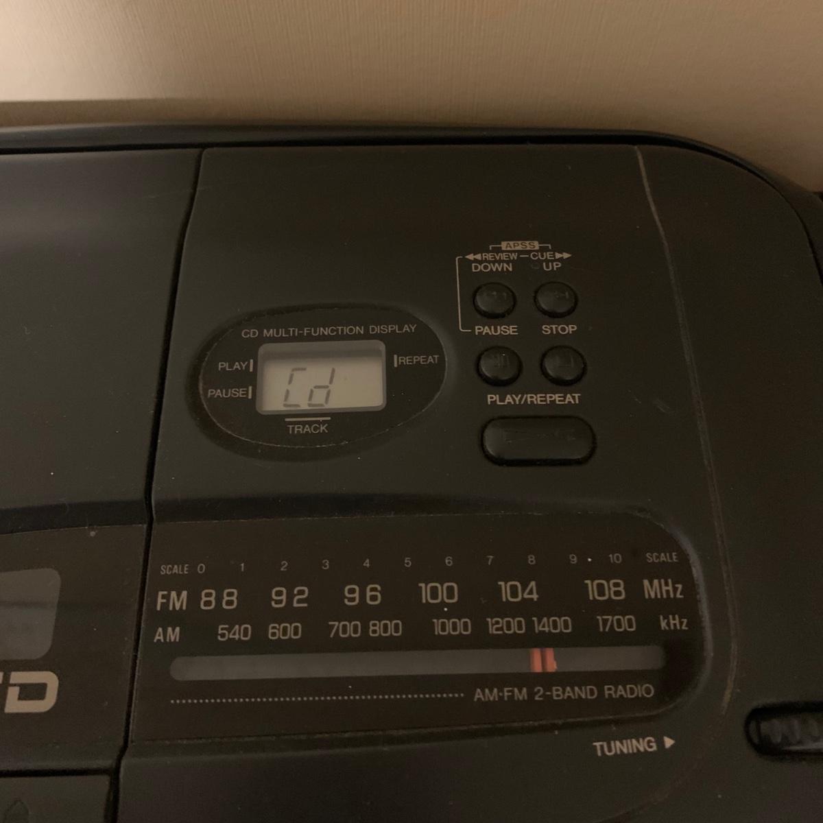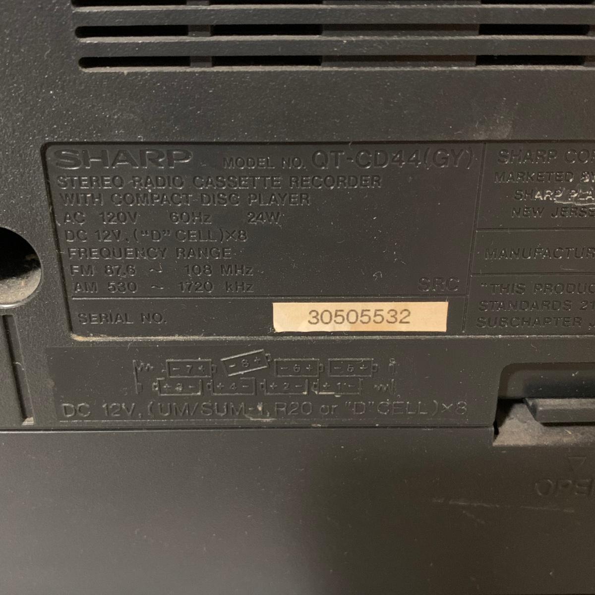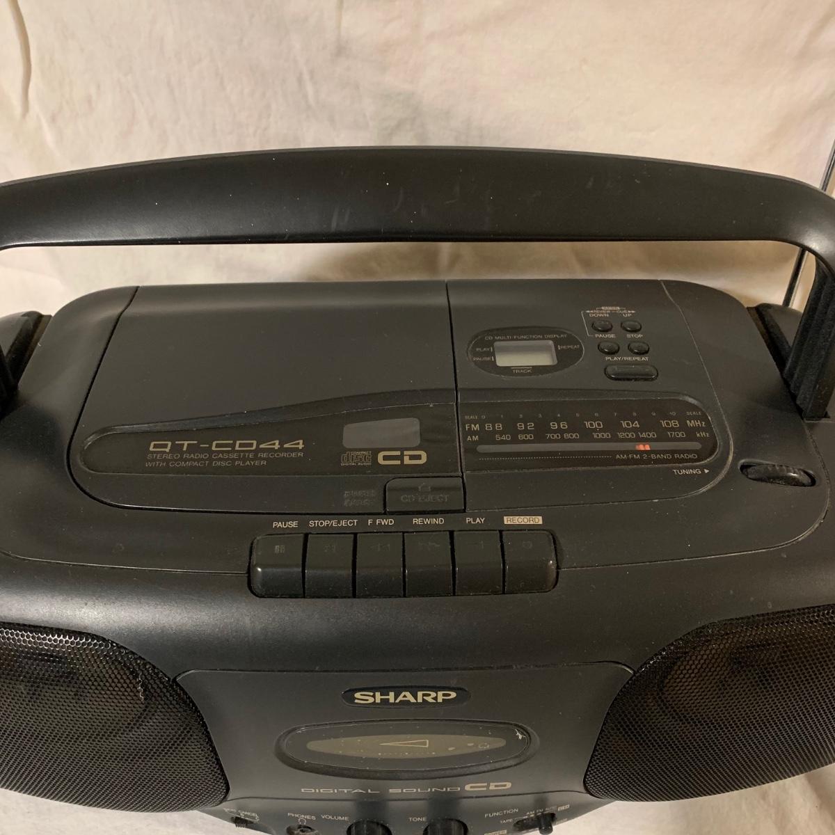 Sharp QT-CD44 steep with AM/FM radio, CD, and cassette player. Unit powers on and antenna is intact. Stereo measures approximately, 17” x 8” x 7.5”H. Shipping available. Shipping can be costly. We suggest contacting our preferred local shipping provider, Postage Express, with dimensions and getting an estimate before bidding: (828) 670-5501 or postageexpress@yahoo.com.