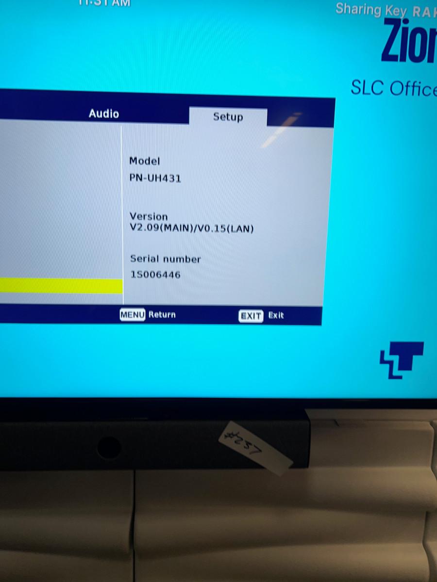 SHARP Television with Remote 43" Wall Mounted Bounce ZOOM Room 2 Zion Location.