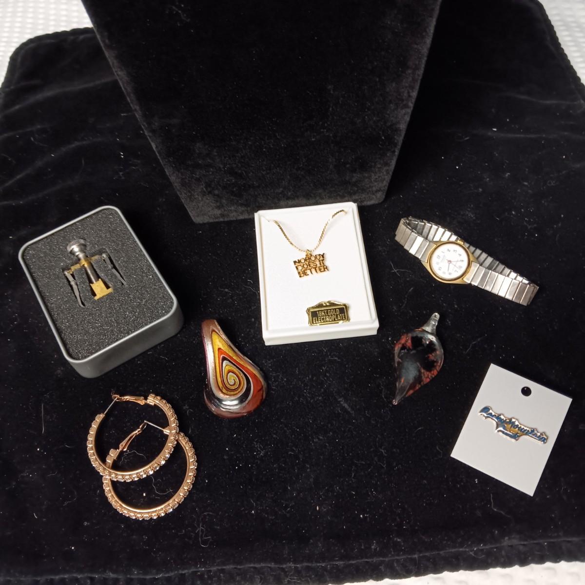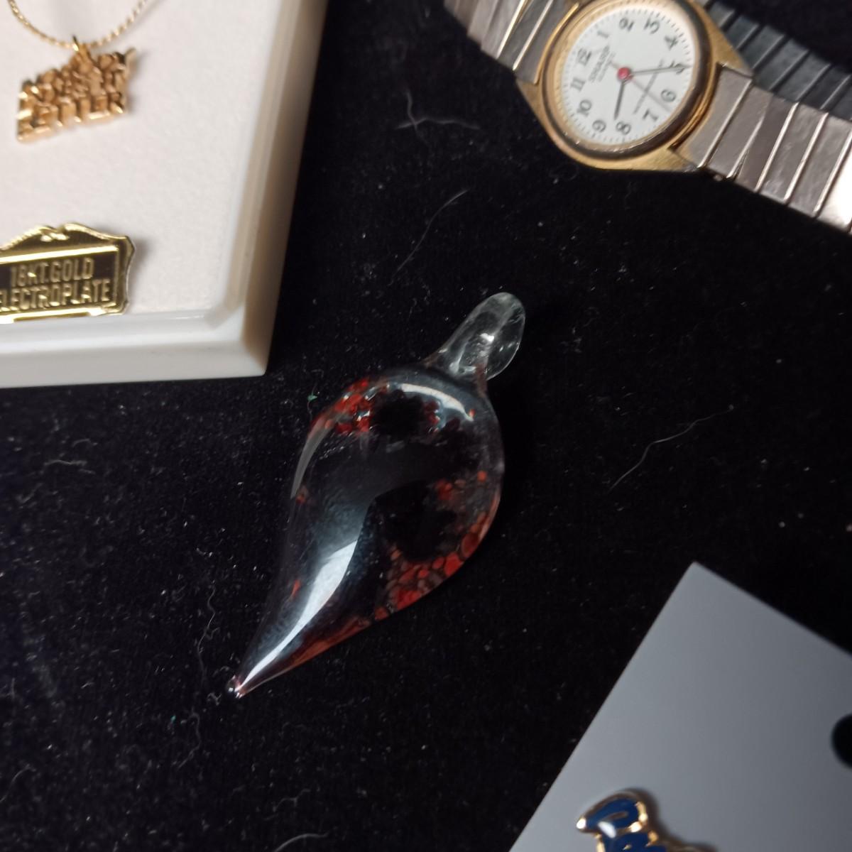 SHARP WATCH AND TOOL TO REMOVE THE BACK OF WATCHES, 2 GLASS PENDANTS AND MORE