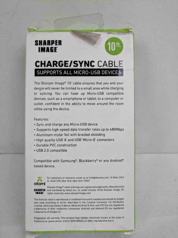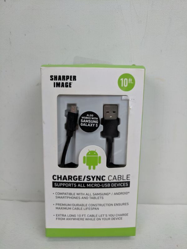 Sharper Image 10 FT Charge/Sync Micro USB Cable - New, Opened Box