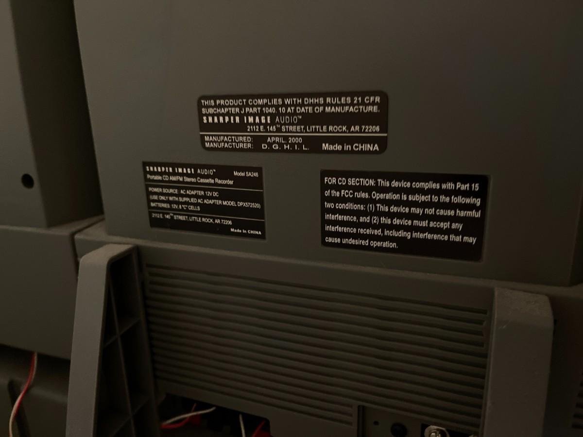 Sharper Image SA246 CD/Cassette/Radio with attached speakers. Not tested.