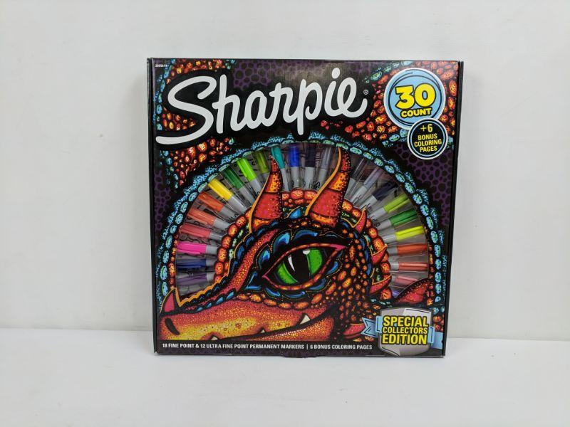 Sharpie Permanent Markers & Dragon Coloring Pgs, Fine and Ultra Fine Point, 30 Count - New