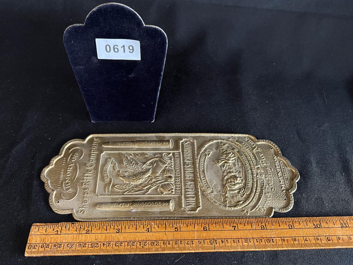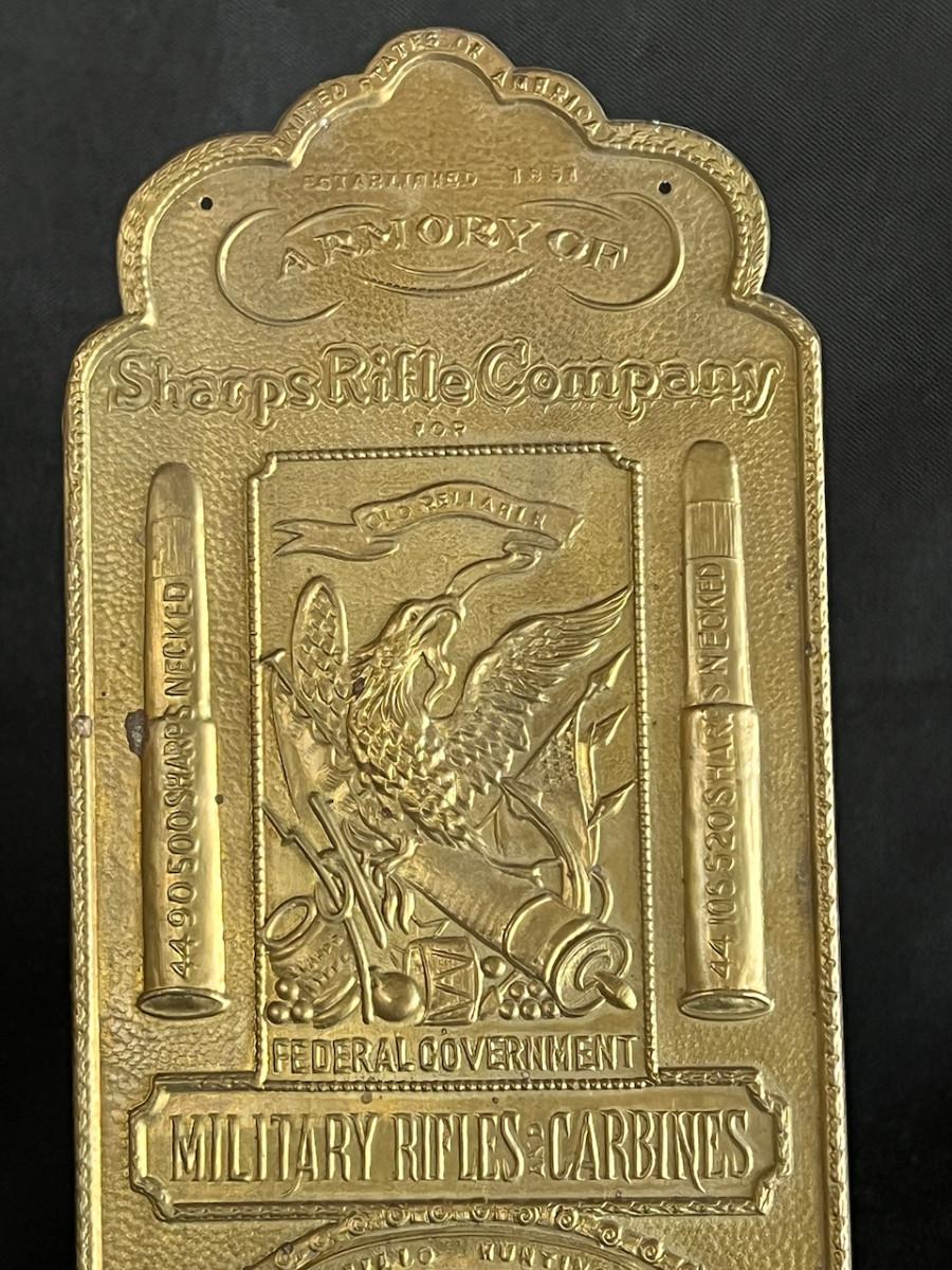 A Sharps Rifle Company brass advertising plaque circa 1875