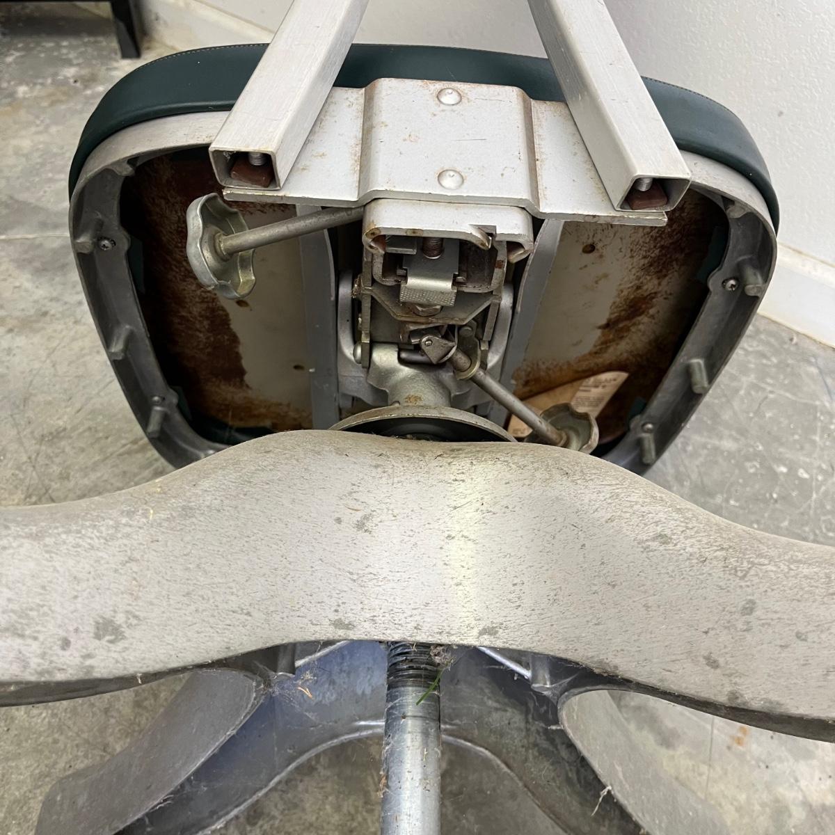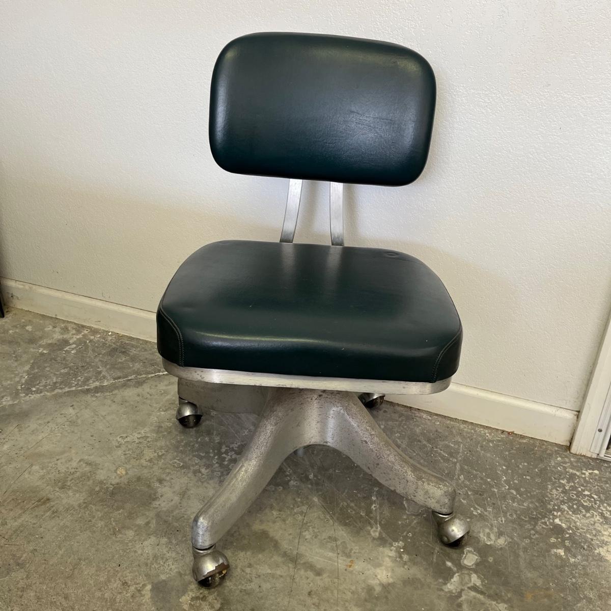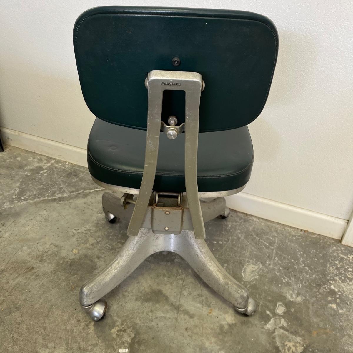 Lot includes a vintage Shaw Walker office chair with padded seat and back. Also includes a metal stool. Chair has a 18” x 18” base and adjustable height.