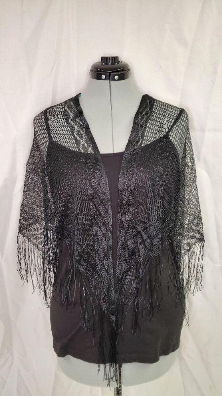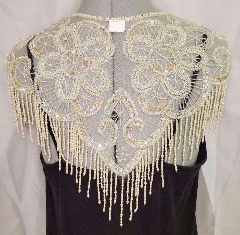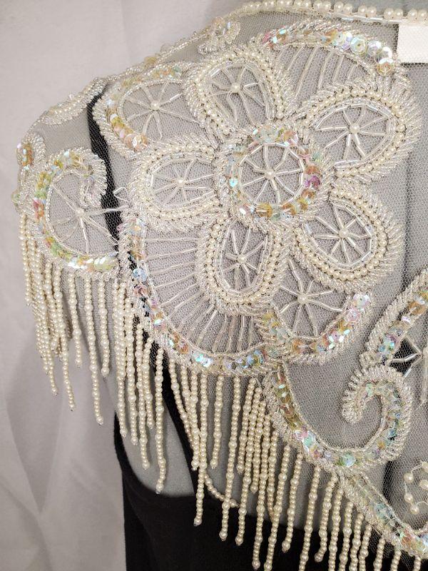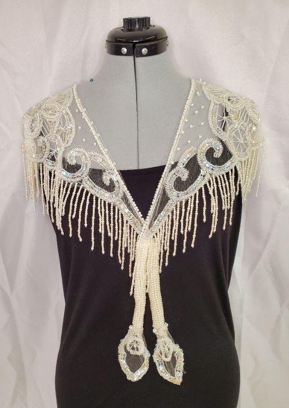 Pearl colored beaded and sequined shawl with beaded fringe, very gorgeous and in good condition.