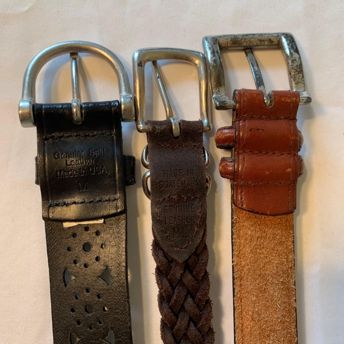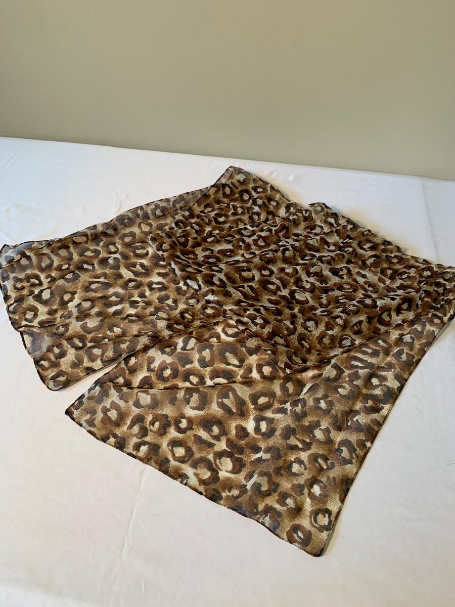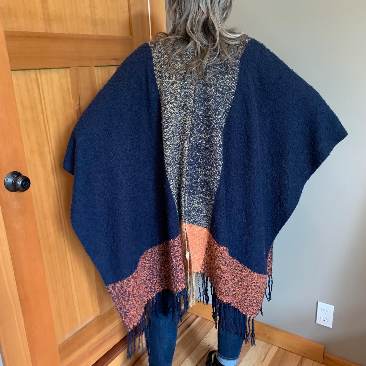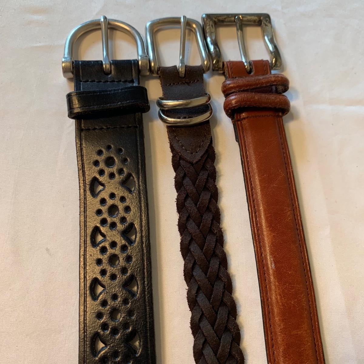 Two lovely woven shawls, four scarves, three leather belts, and a scarf hanger. The blue/orange shawl is very big and cozy, and super soft. The maroon and red scarves feel like a soft pashmina. The red one has tons of tiny sequins. The leopard print scarf is sheer and has a soft silky feel. The olive green, pink, and yellow is an infinity scarf. The scarf organizer holds 12 scarves. The three leather belts are 41” to 40” long.