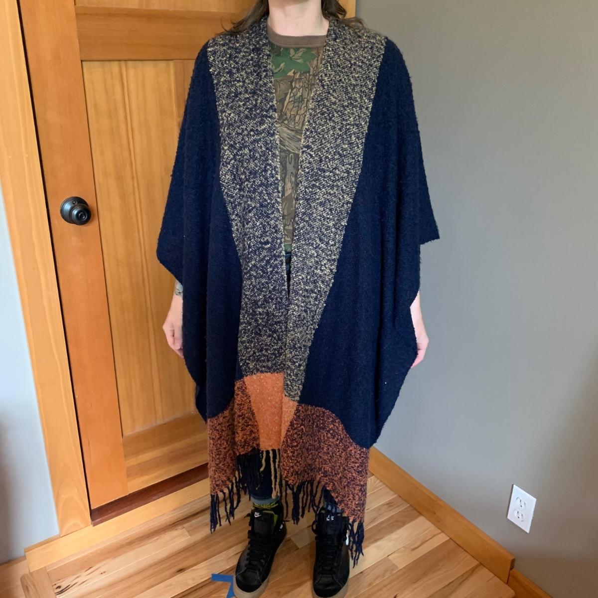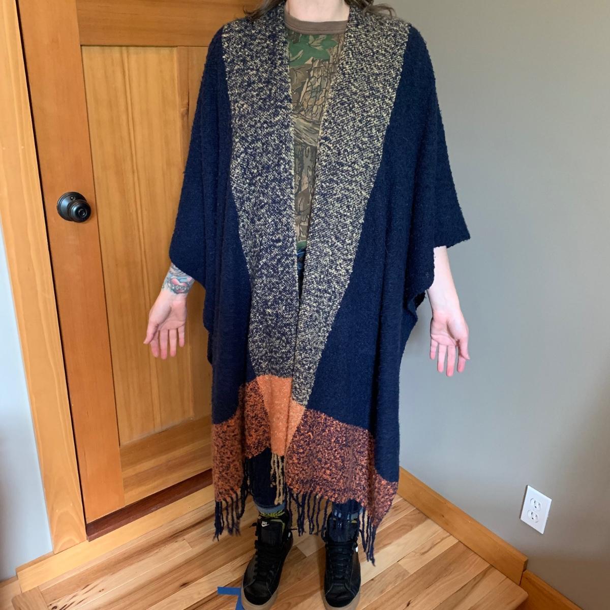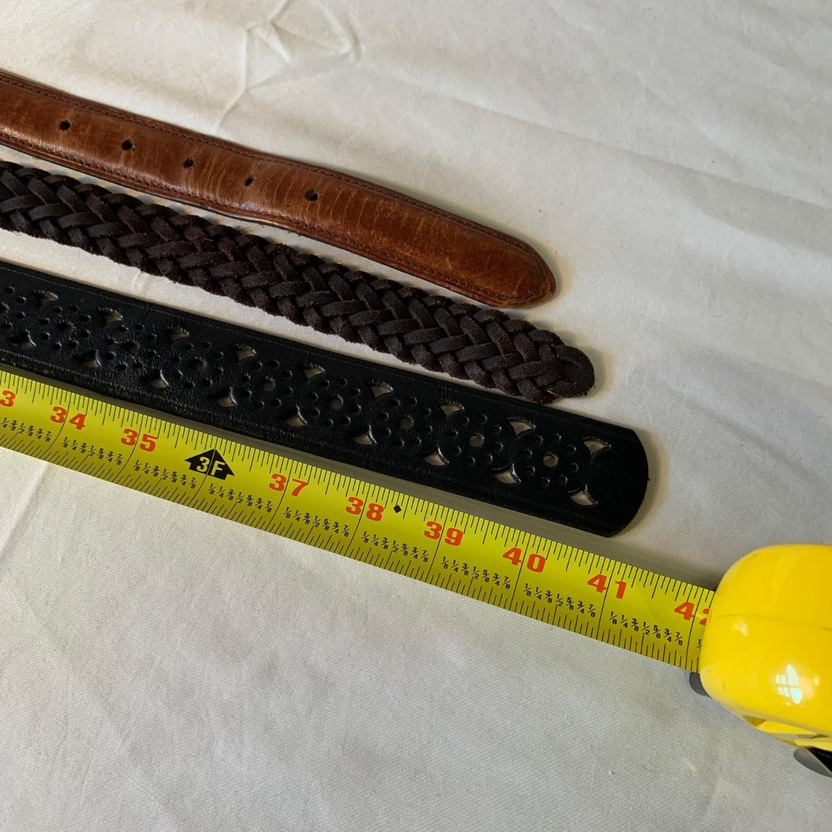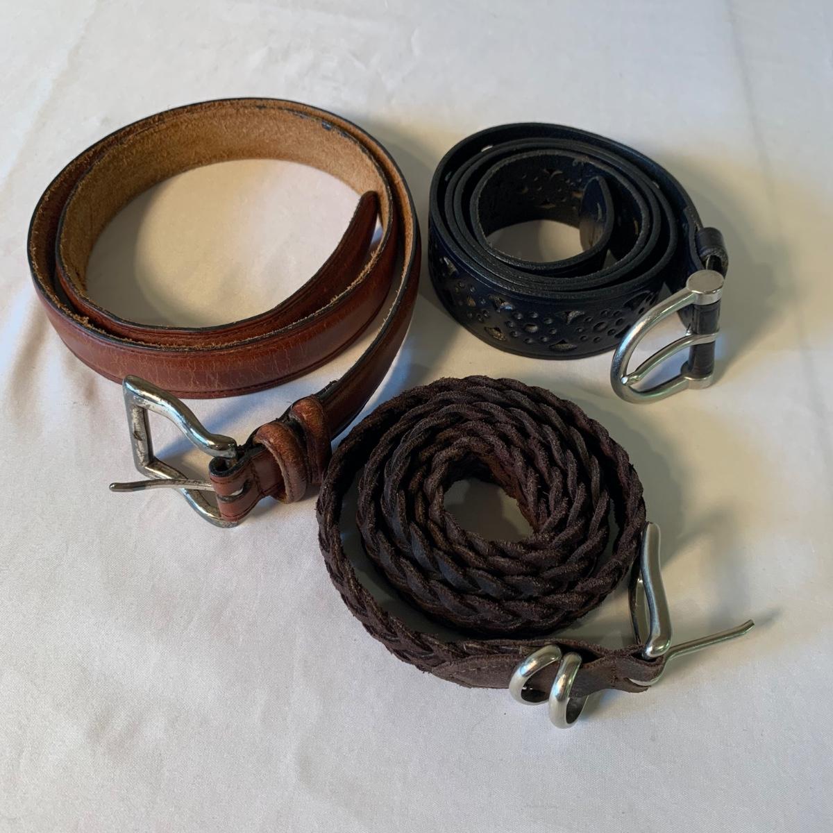 Two lovely woven shawls, four scarves, three leather belts, and a scarf hanger. The blue/orange shawl is very big and cozy, and super soft. The maroon and red scarves feel like a soft pashmina. The red one has tons of tiny sequins. The leopard print scarf is sheer and has a soft silky feel. The olive green, pink, and yellow is an infinity scarf. The scarf organizer holds 12 scarves. The three leather belts are 41” to 40” long.