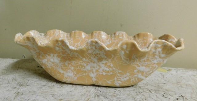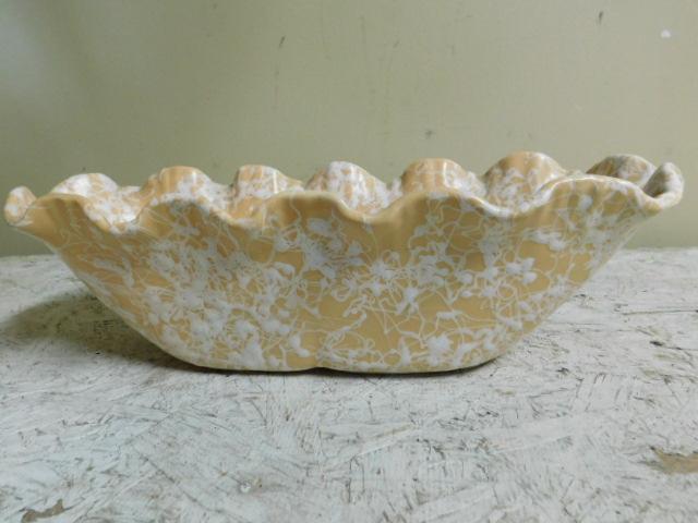 Shawnee 1960's Ruffle Edge Splatter Pottery Plant Bowl  13"x4"