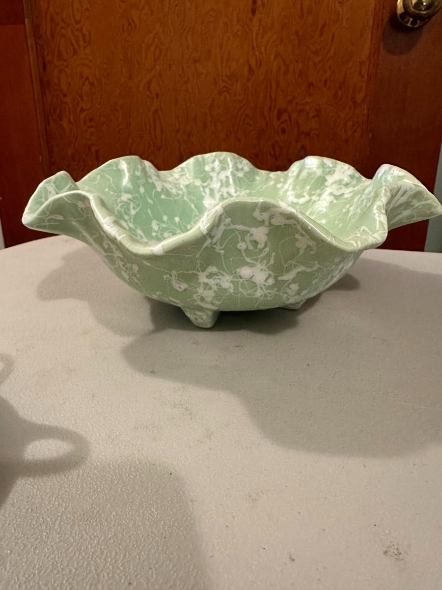 Shawnee Pottery Matte Cameo Green Splatter Footed Centerpiece Bowl 2503