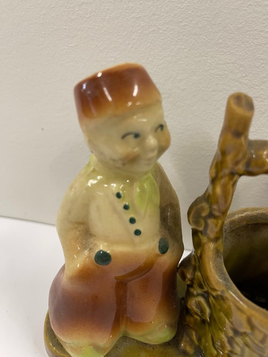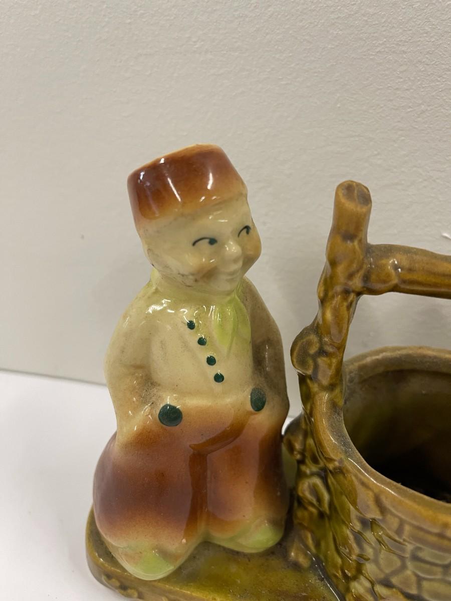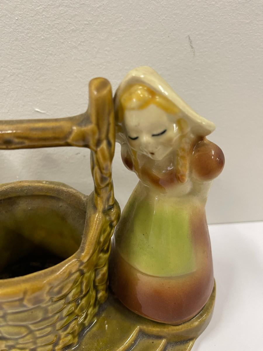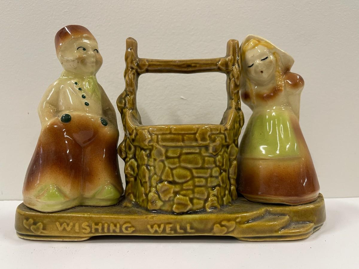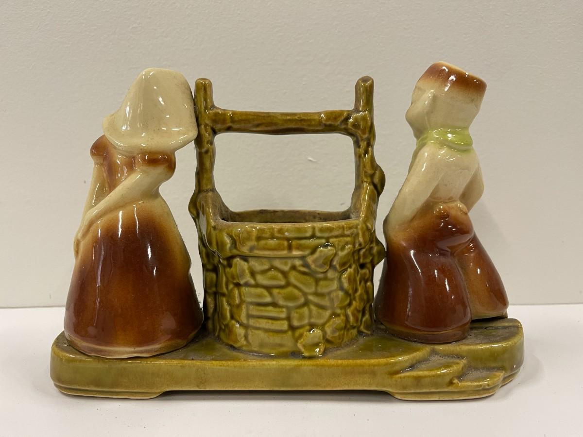 Classic 1950s Dutch boy & girl "Wishing Well" planter. Adorable little accent piece for post-WWII era pottery collection. Approx.: 8" W x 5.25" H # 1076