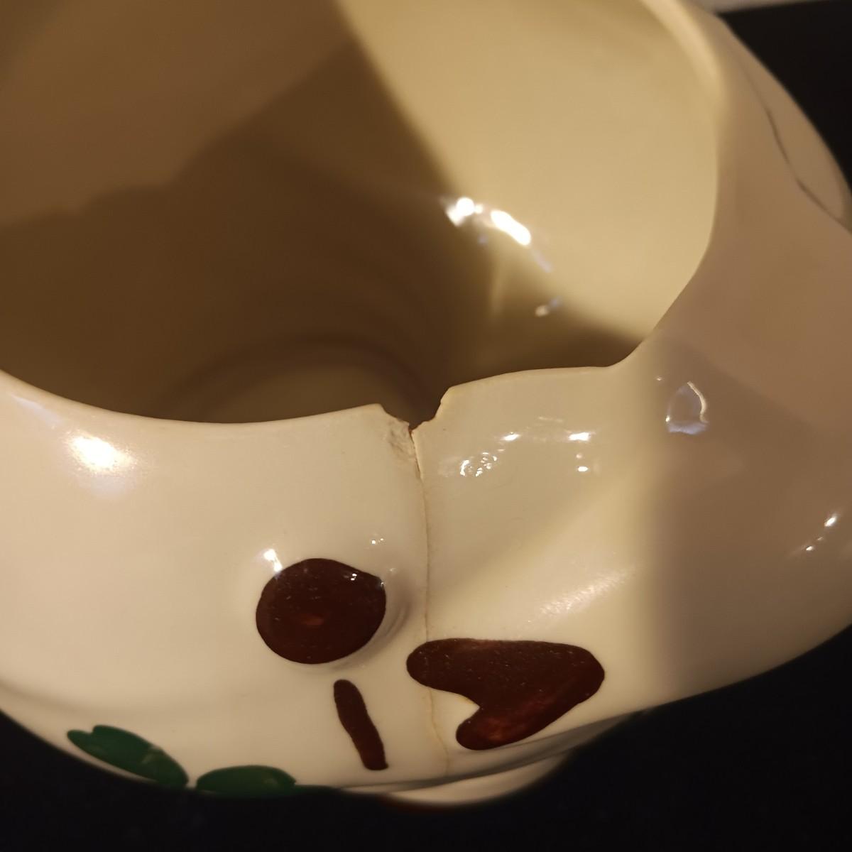 THERE IS A CHIP ON THE RIM OF THE BODY WITH A HAIRLINE CRACK (SEE PIC)