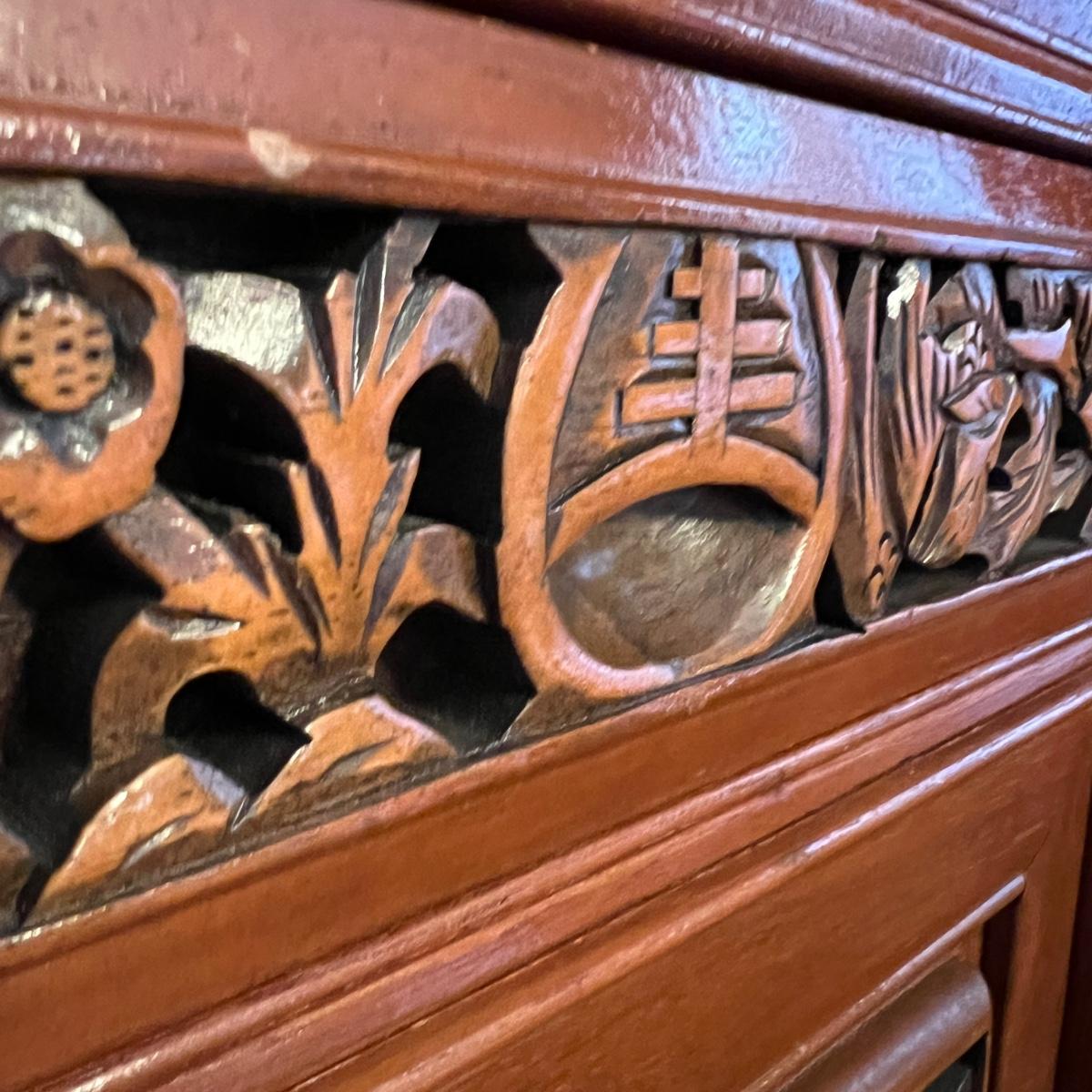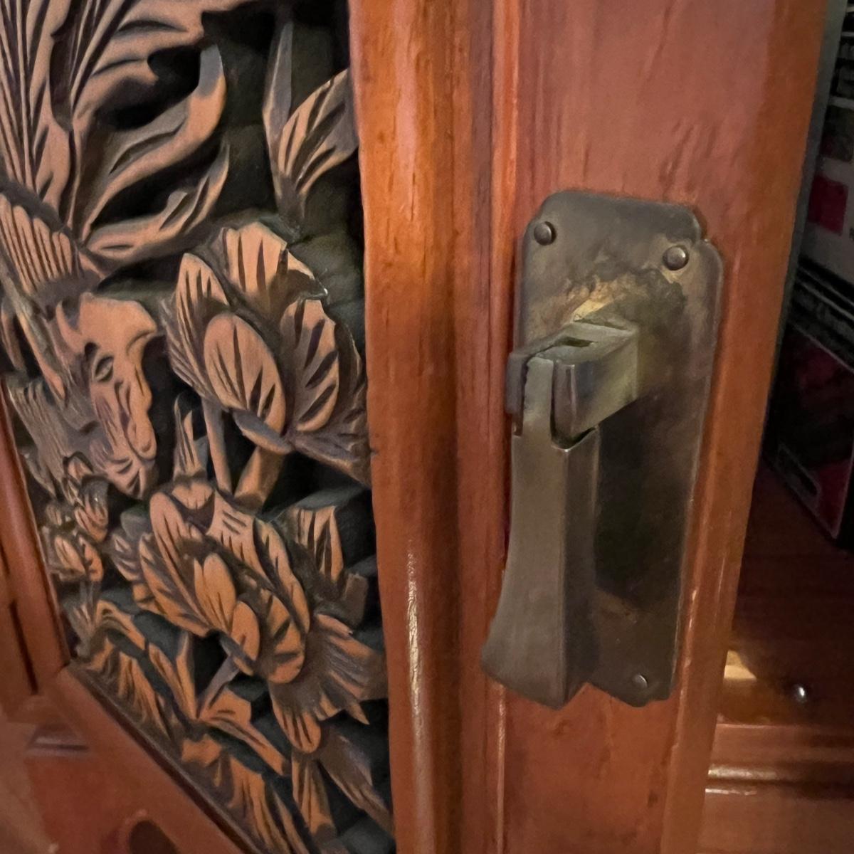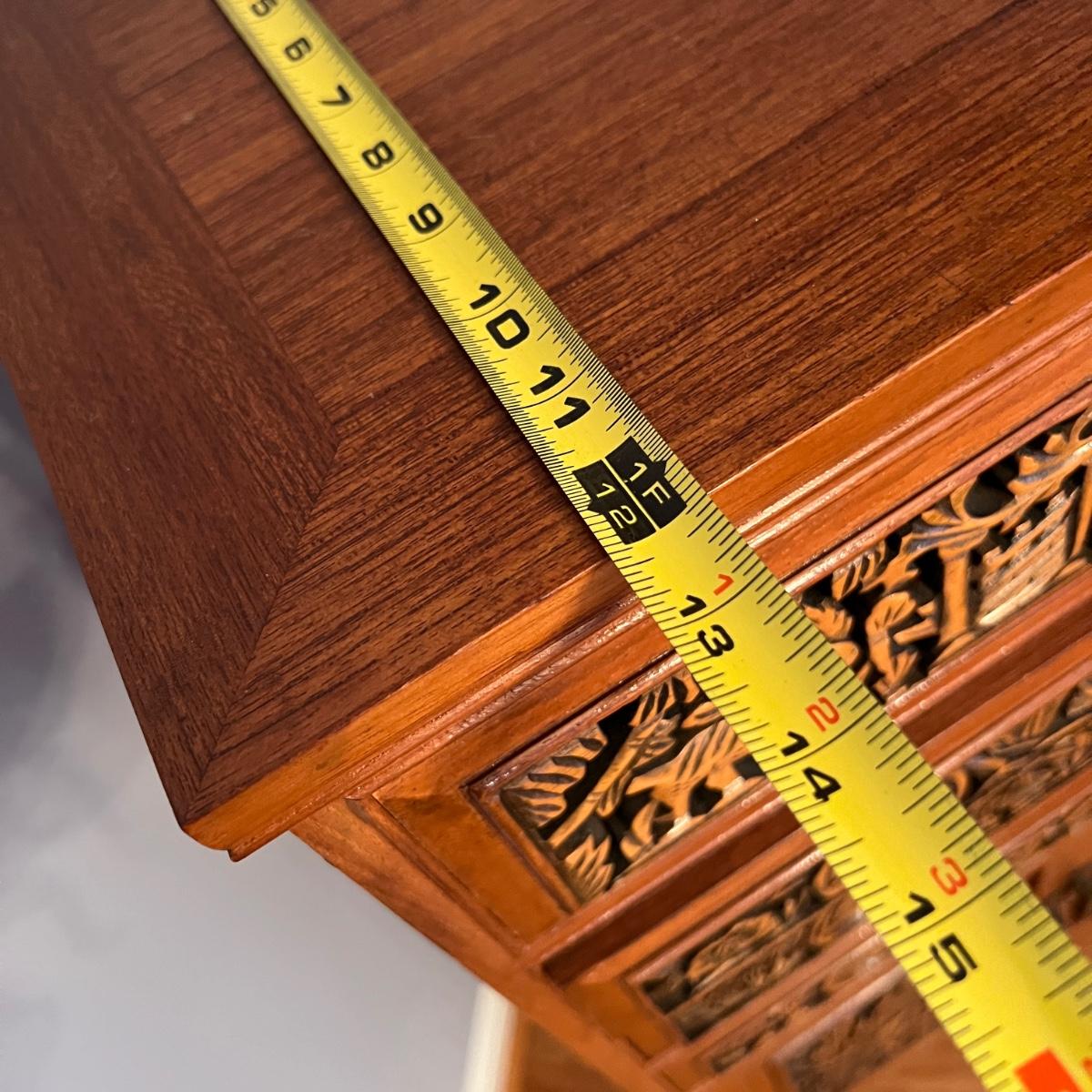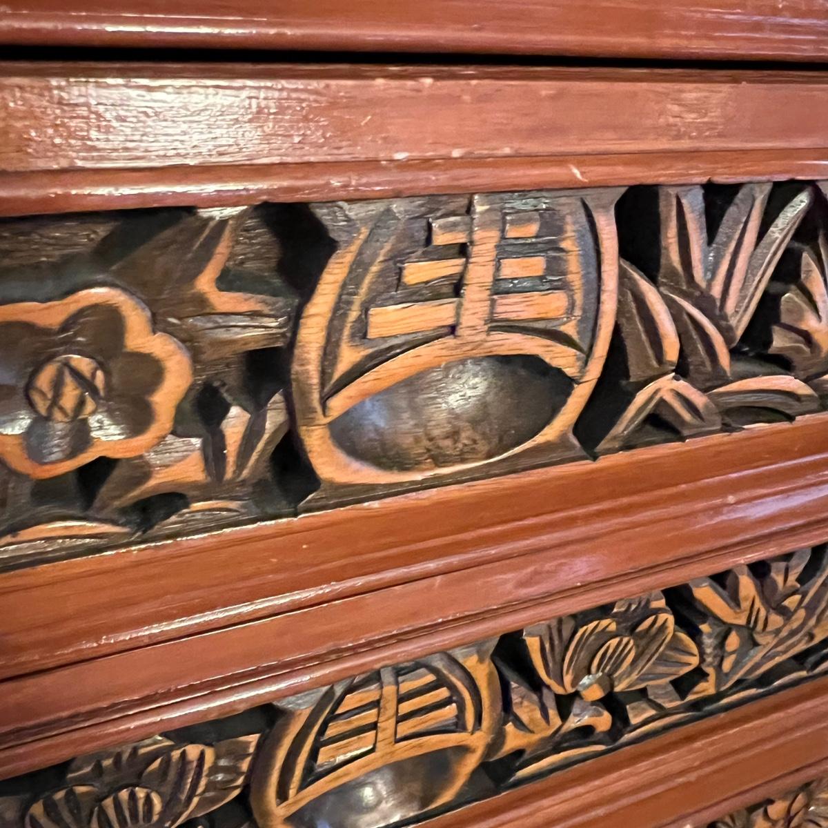 Asian Carved Wood Flatware Chest 4 Drawer + Cabinet