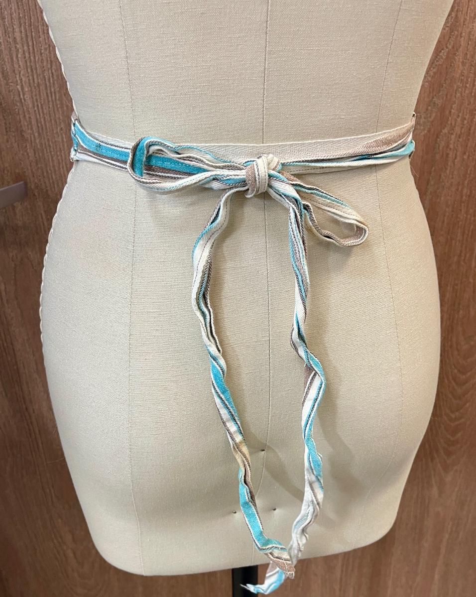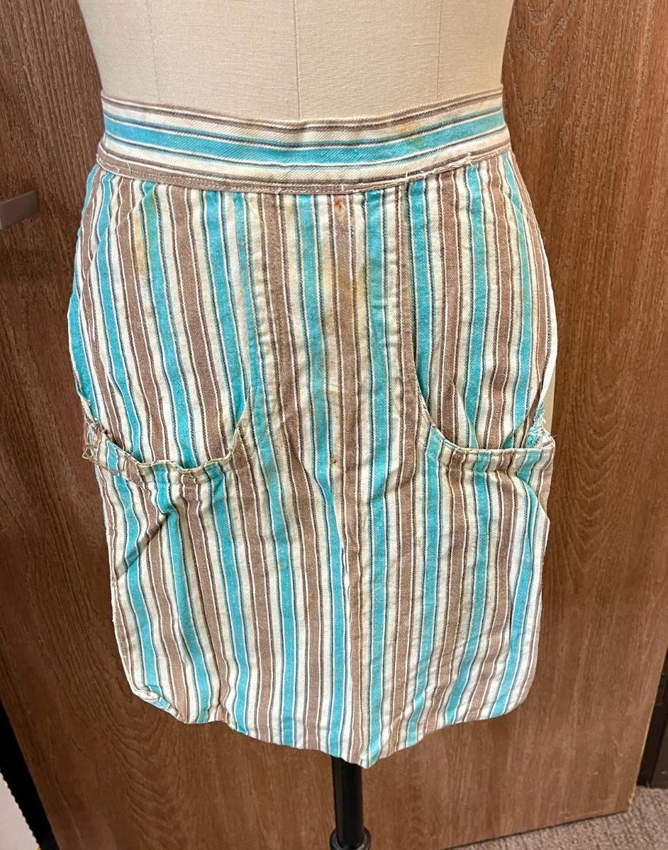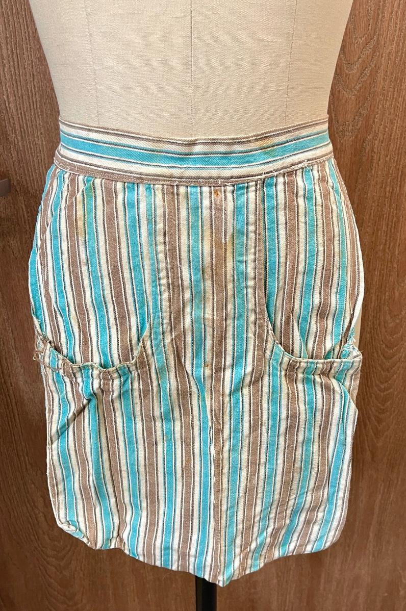 Vintage Apron striped turquoise, brown white stripes