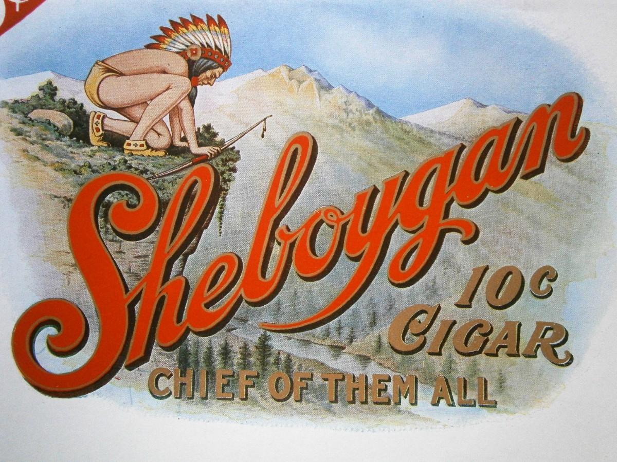 "Sheboygan" Cigar Label from the early 1900’s or earlier, printed in USA, 9 3/4 x 6 3/4 in., in very nice condition.