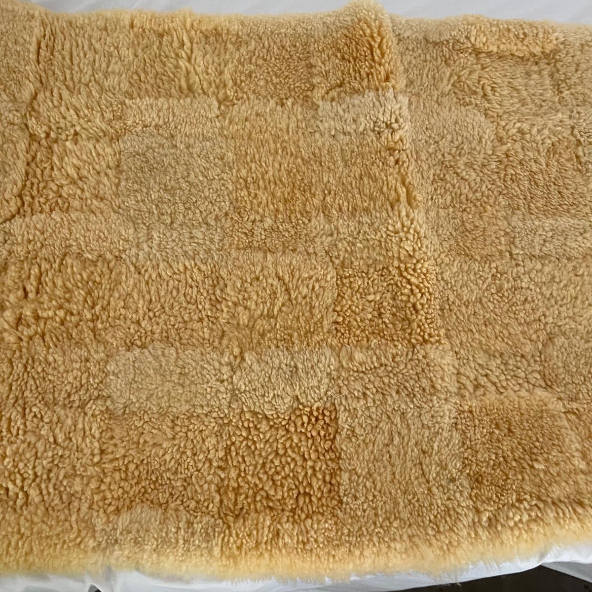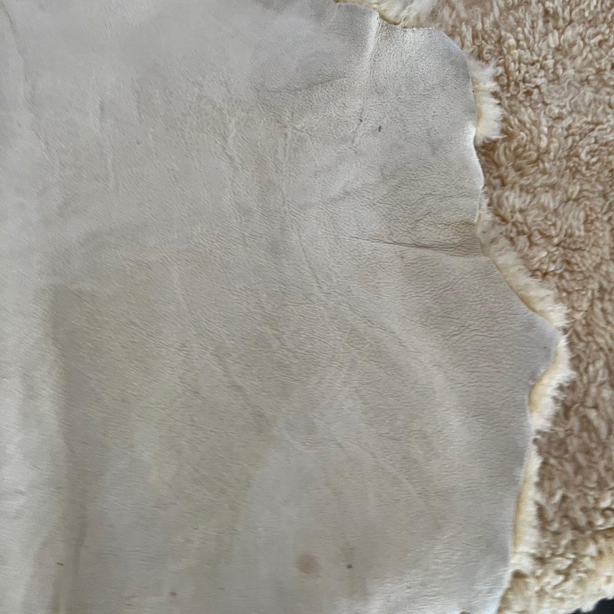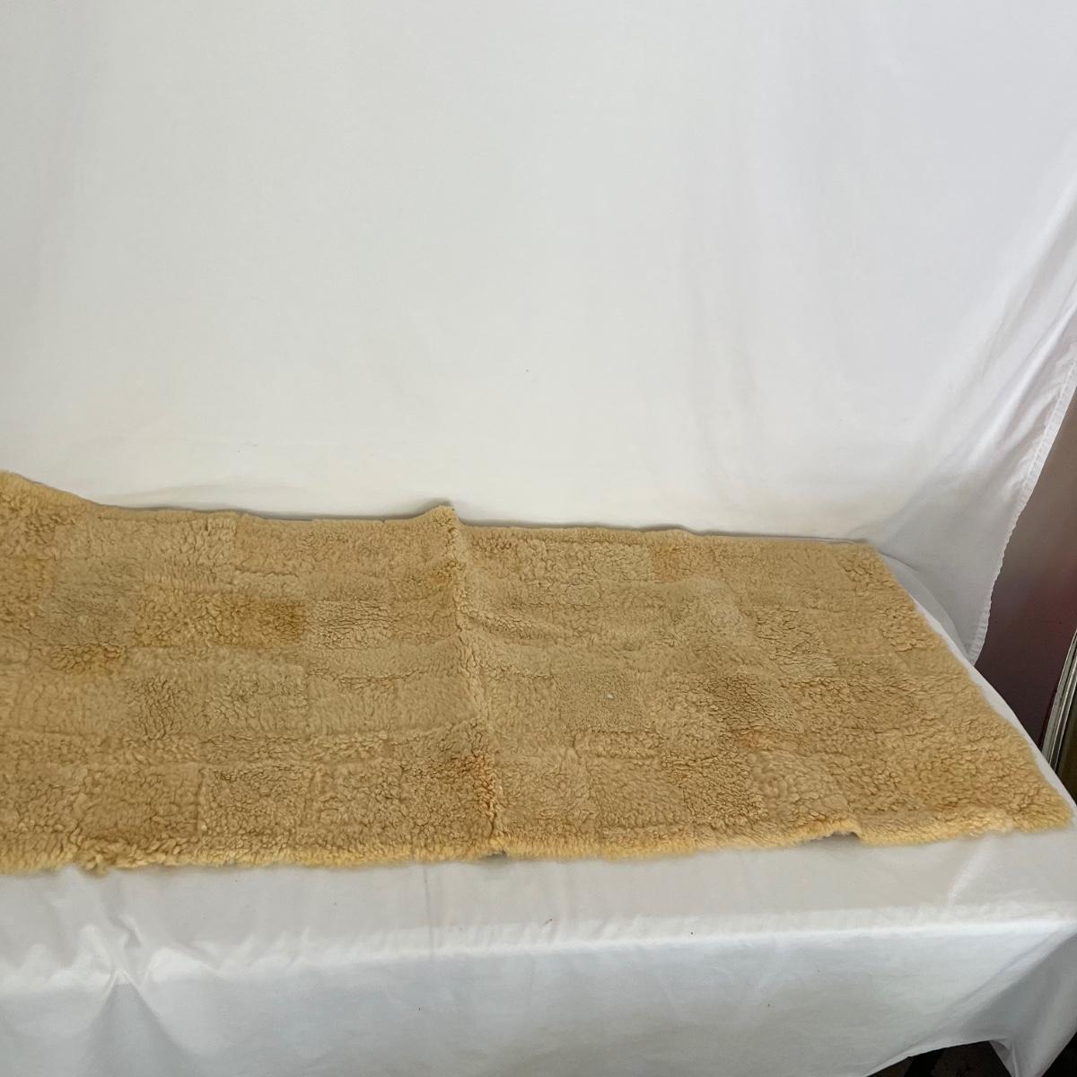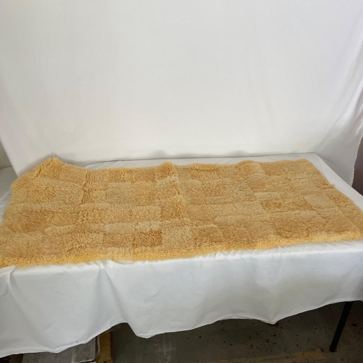 Lot includes two rectangular sheepskin rugs that measure 23” x 52”. Also includes two sheepskin pelts. No labels found to authenticate.