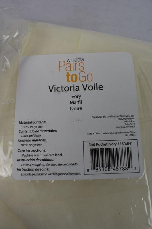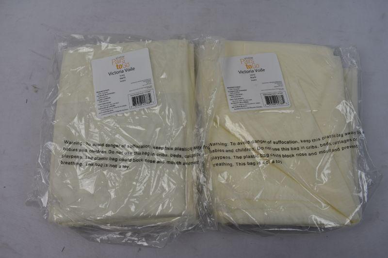 Sheer Curtains, 2 Pairs, Ivory, by "Window Pairs to Go" Victoria Voile - New