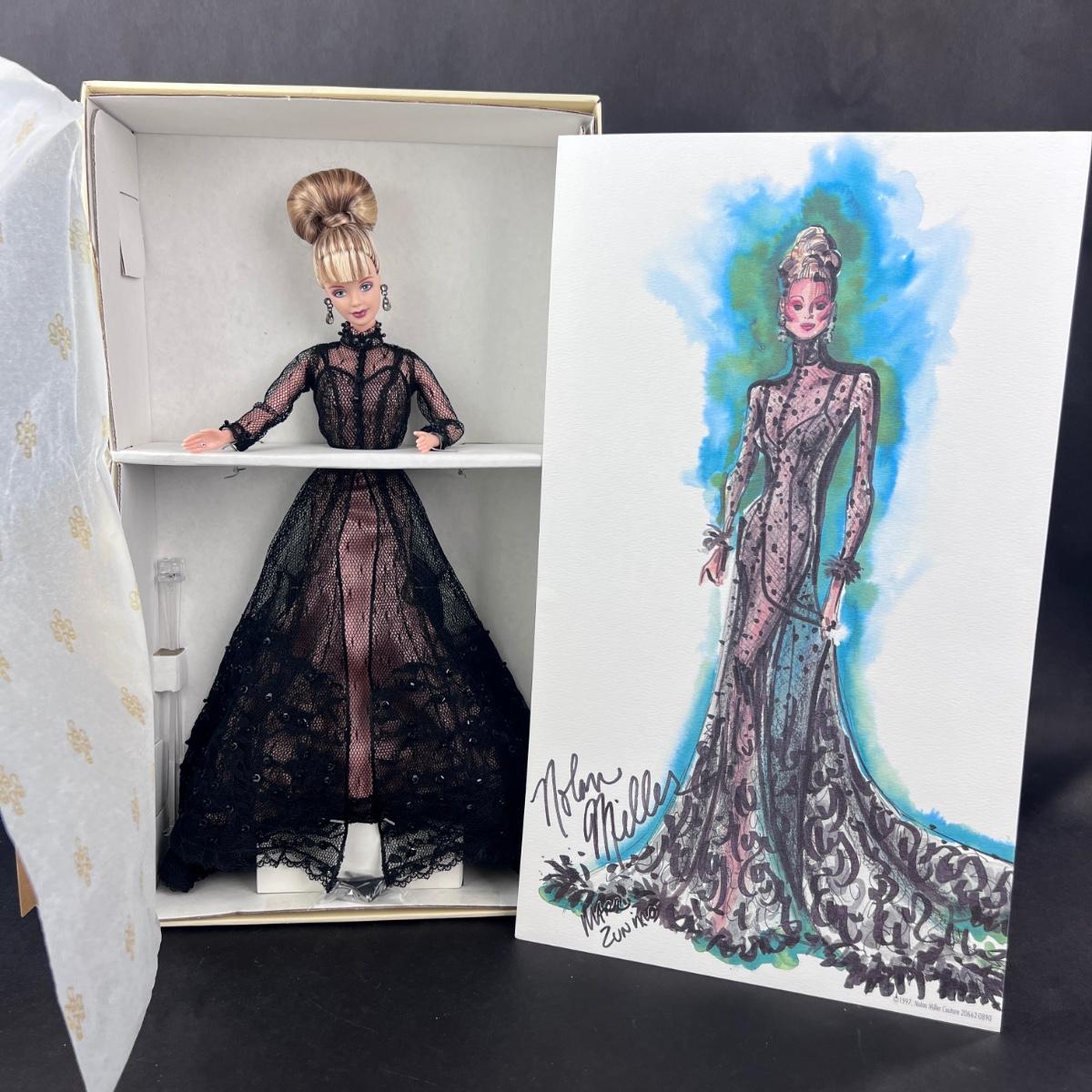 This beautiful Sheer Illusion Barbie Doll was designed by Nolan Miller and produced by Mattel in 1998. This doll has not been out of its box. This doll comes with the sketch that accompanied their release. It is NOT an original signature. **|** Please see photos for details and condition. ::: Shipping is available on this lot. If you require shipping you must let us know at the close of the auction. We will coordinate with you after the item has been won. Shipping fees will include insurance up to or exceeding the value of all items being mailed. If you have any questions regarding this lot please contact the auctioneer either via this website, by direct email or by phone. PICK UP TIMES and other important information can be found in the TERMS and DESCRIPTION of the auction. Please take a look for pertinent information. Thanks!