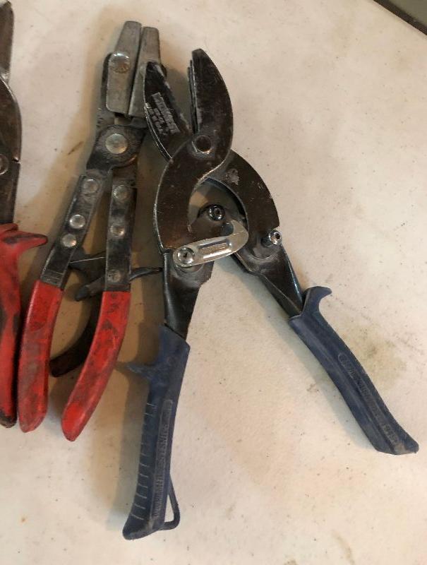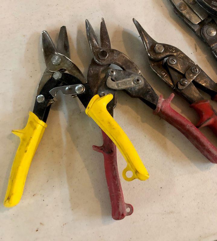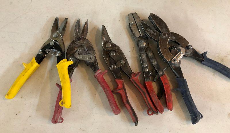 A variety of sheet metal tin snips..as shown..five in all...Good used condition...