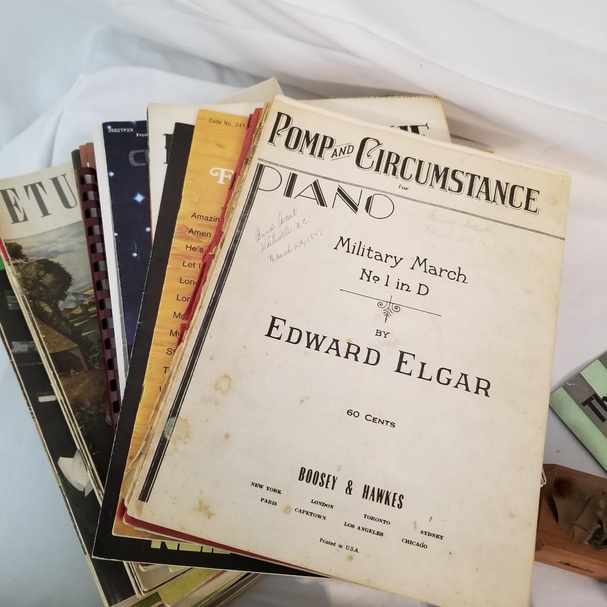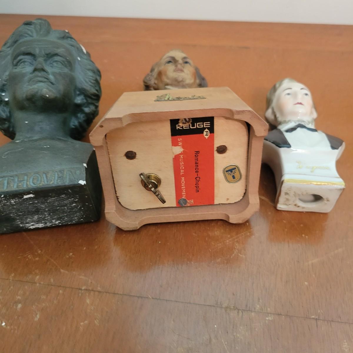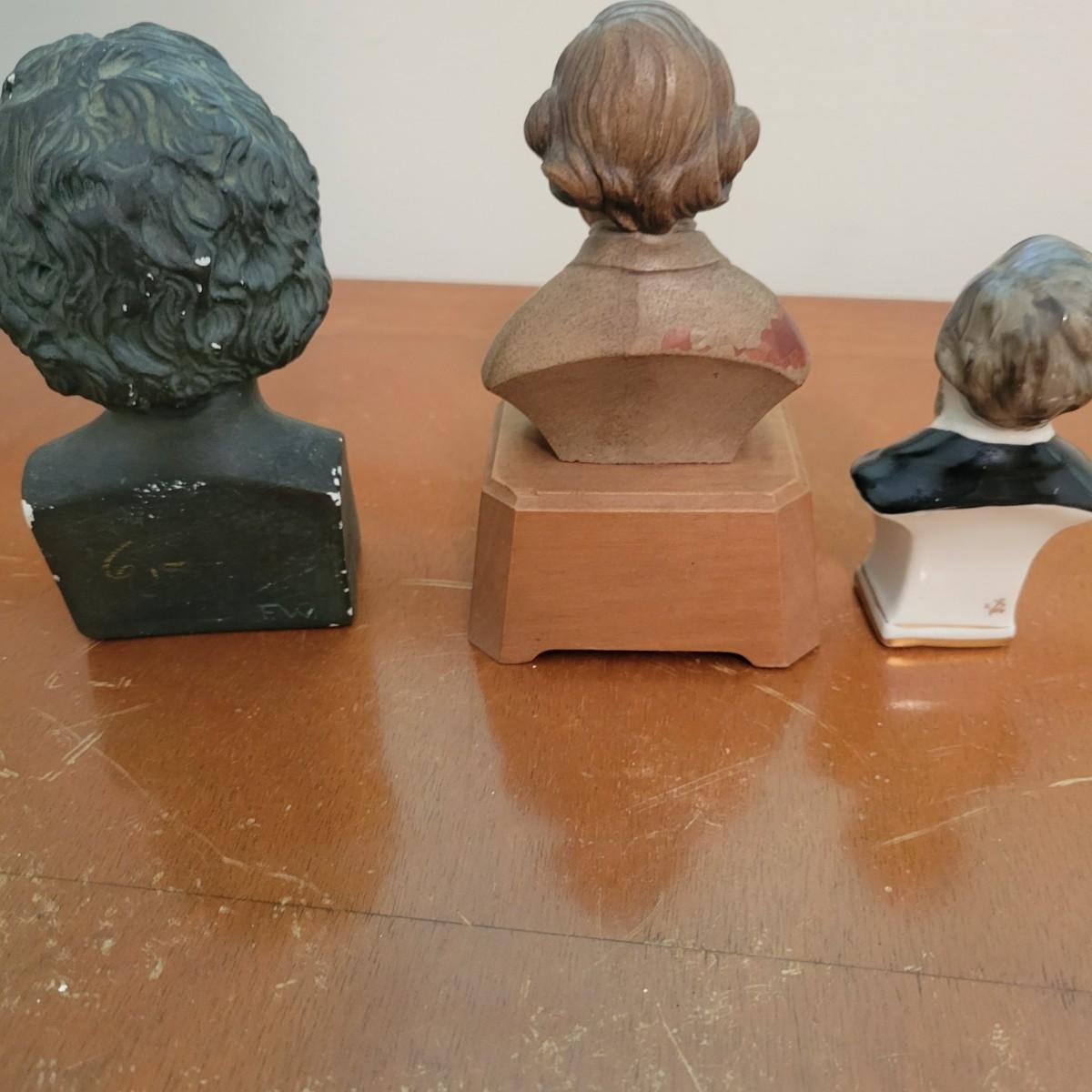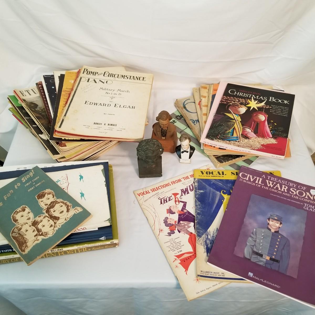 Modern, classical, and in between assortment of sheet music and books. Mix of genres and ages, piano, vocal, etc. Also includes busts of some classical greats. Three composer figurines are in good condition with minor scratches or aging. Beethoven is plaster, Chopin is made of resin and Wagner is made of ceramic. See photos for detail. Shipping available.