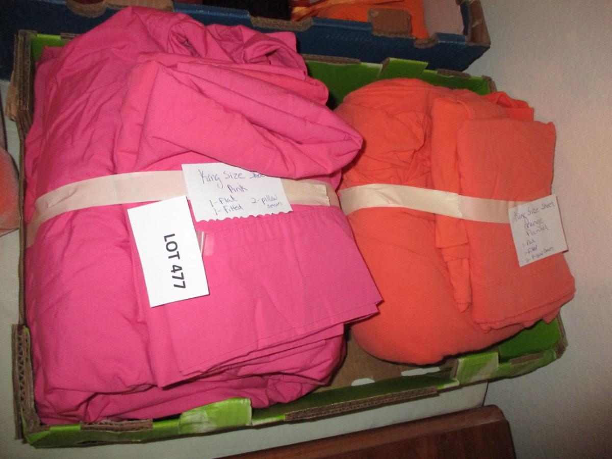 King Sized Sheets-- pink/orange. Mixed--1 flat sheet./6 pillow cases
