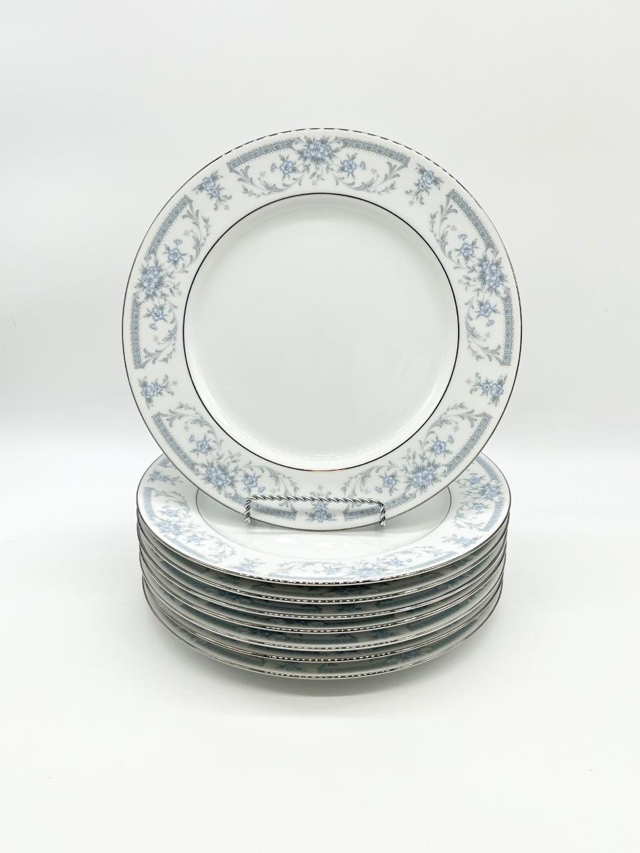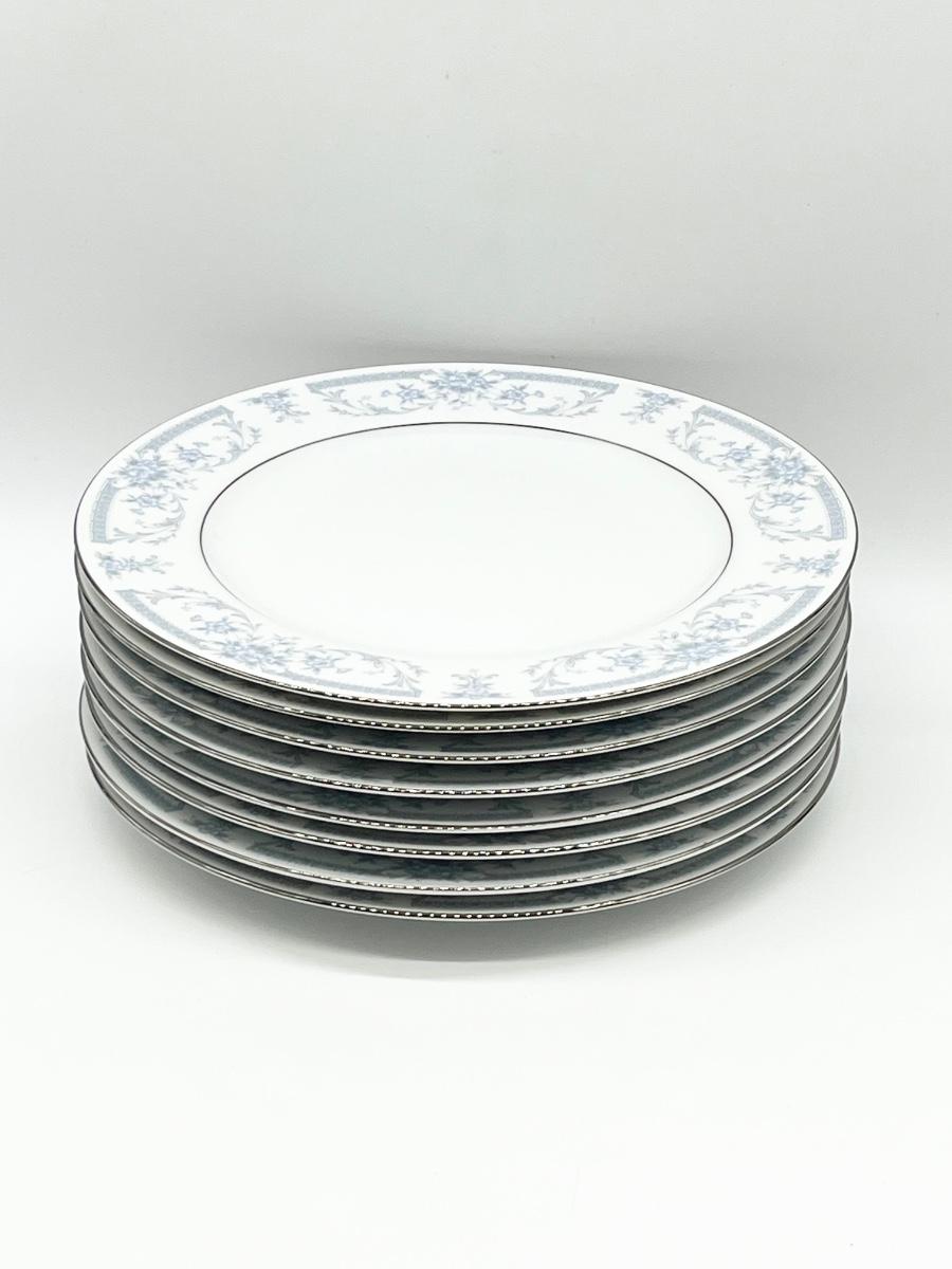 SHEFFIELD ~ Blue Whisper ~ Eight (8) Porcelain Fine China Dinner Plates