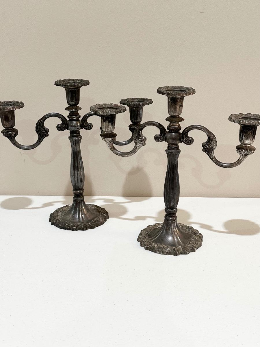 SHEFFIELD ~ Pair (2) ~ 3 Tiered Candelabra