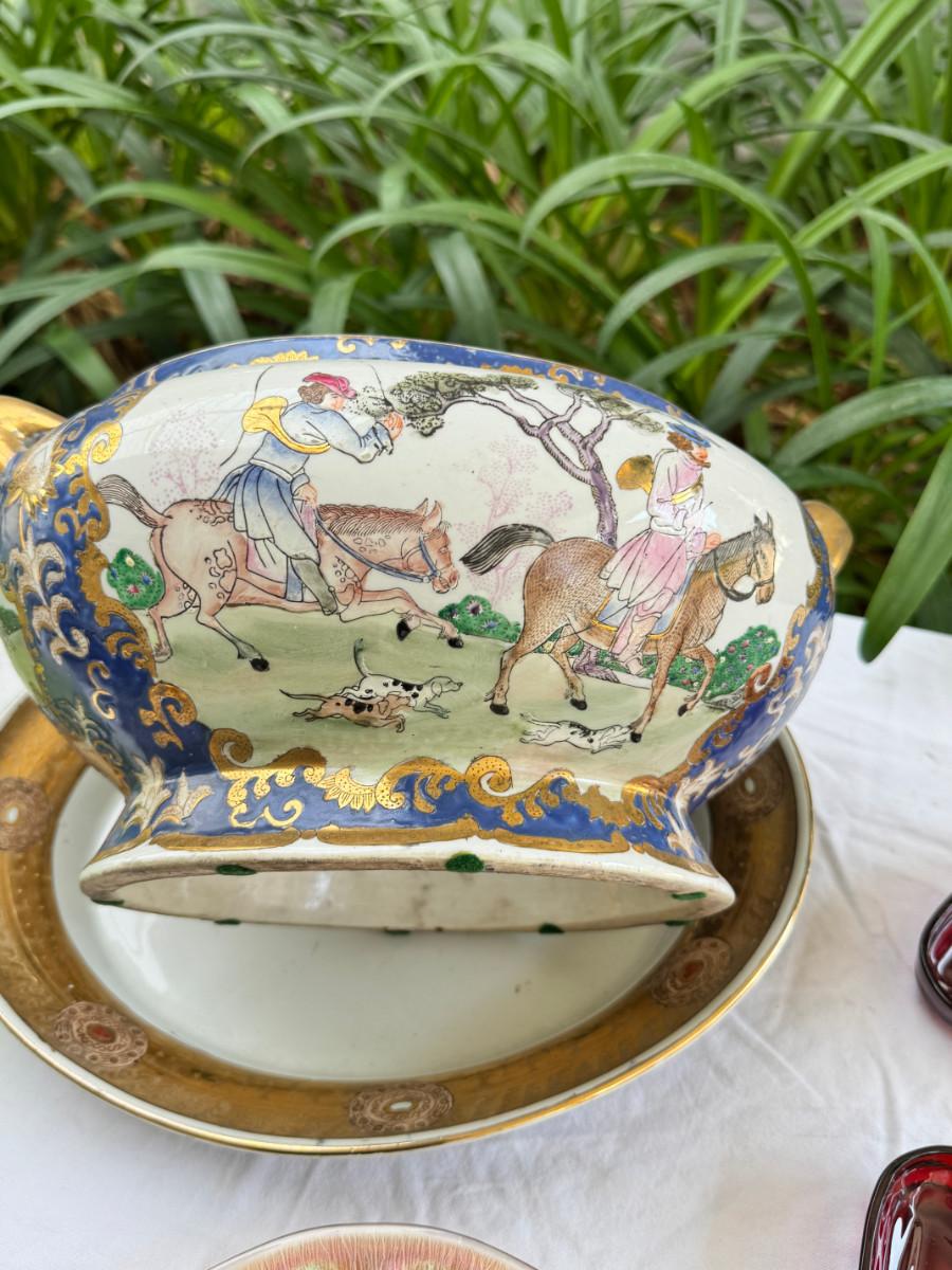 Sheffield Silver plate mirror display plate, Chinese Tureen