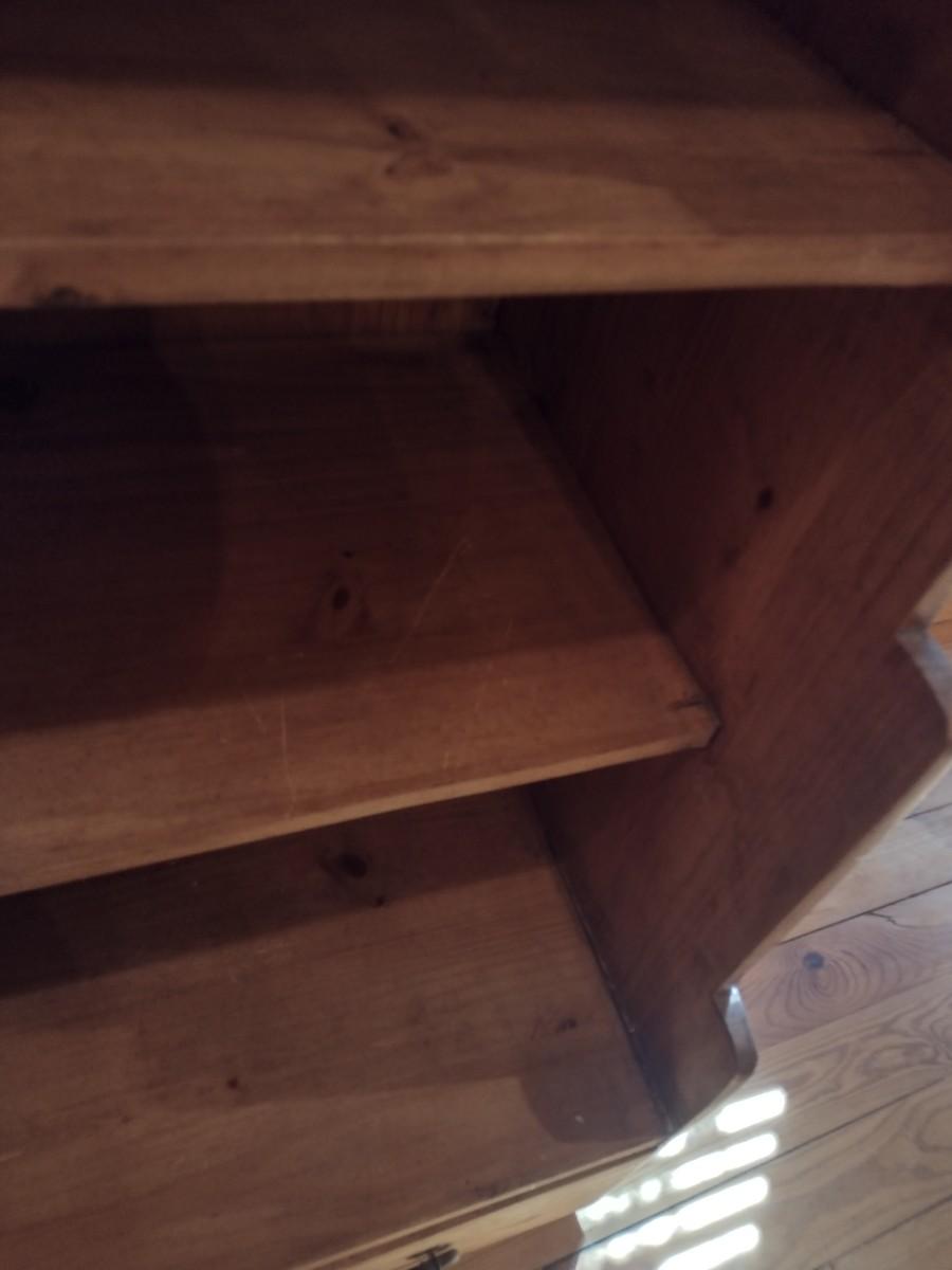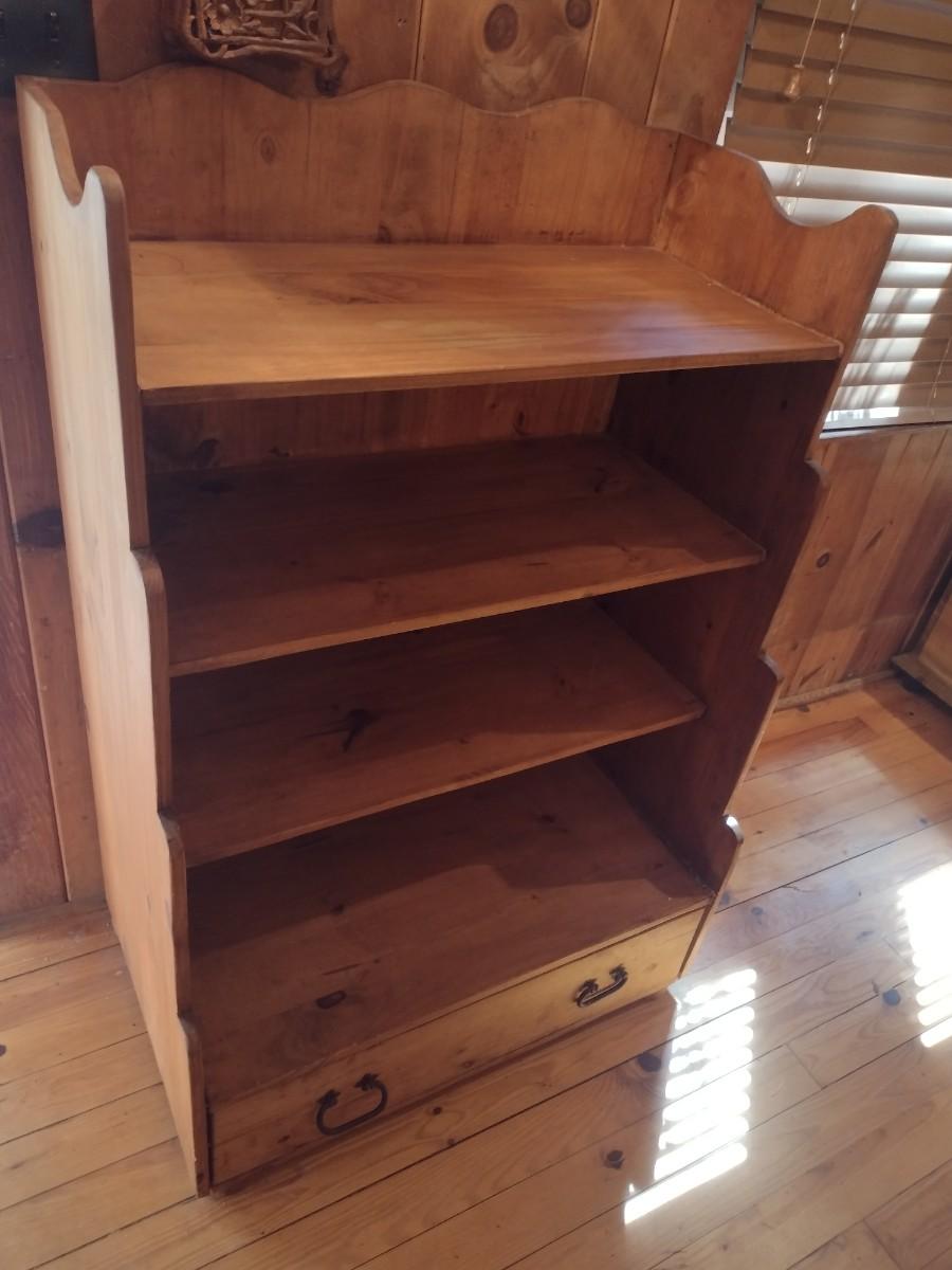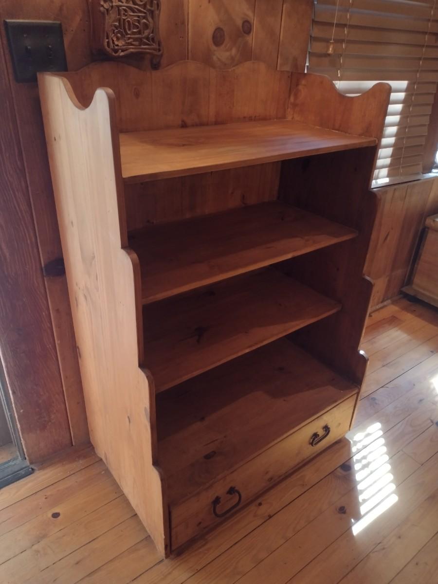 Solid Wood Book Stand with Storage. Some wood drying is causing the seams to separate at the nails. Will need to have minor repair as shown PLEASE NOTE:. Due to no internet connection or wireless service, all invoices must be prepaid via PayPal, Stripe, or Zelle prior to arrival at pick up. Exact change cash onsite is acceptable but absolutely no debit or credit cards at time of pick up.