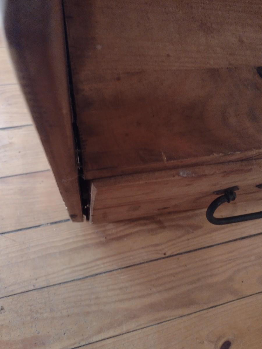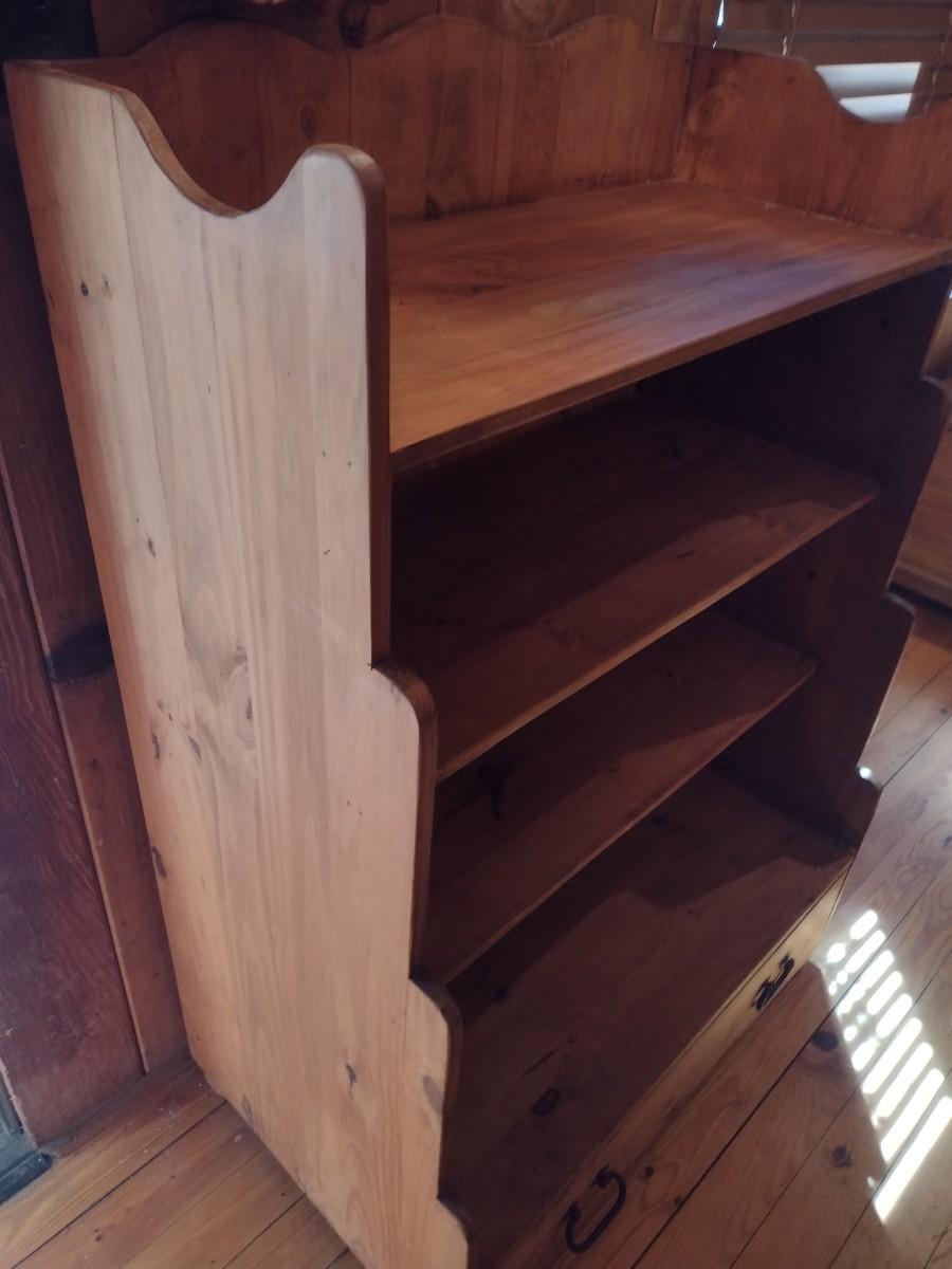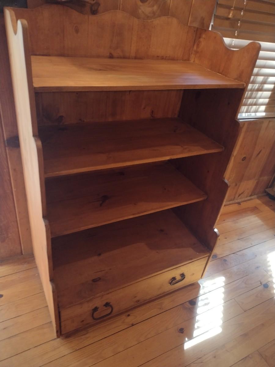 Solid Wood Book Stand with Storage. Some wood drying is causing the seams to separate at the nails. Will need to have minor repair as shown PLEASE NOTE:. Due to no internet connection or wireless service, all invoices must be prepaid via PayPal, Stripe, or Zelle prior to arrival at pick up. Exact change cash onsite is acceptable but absolutely no debit or credit cards at time of pick up.