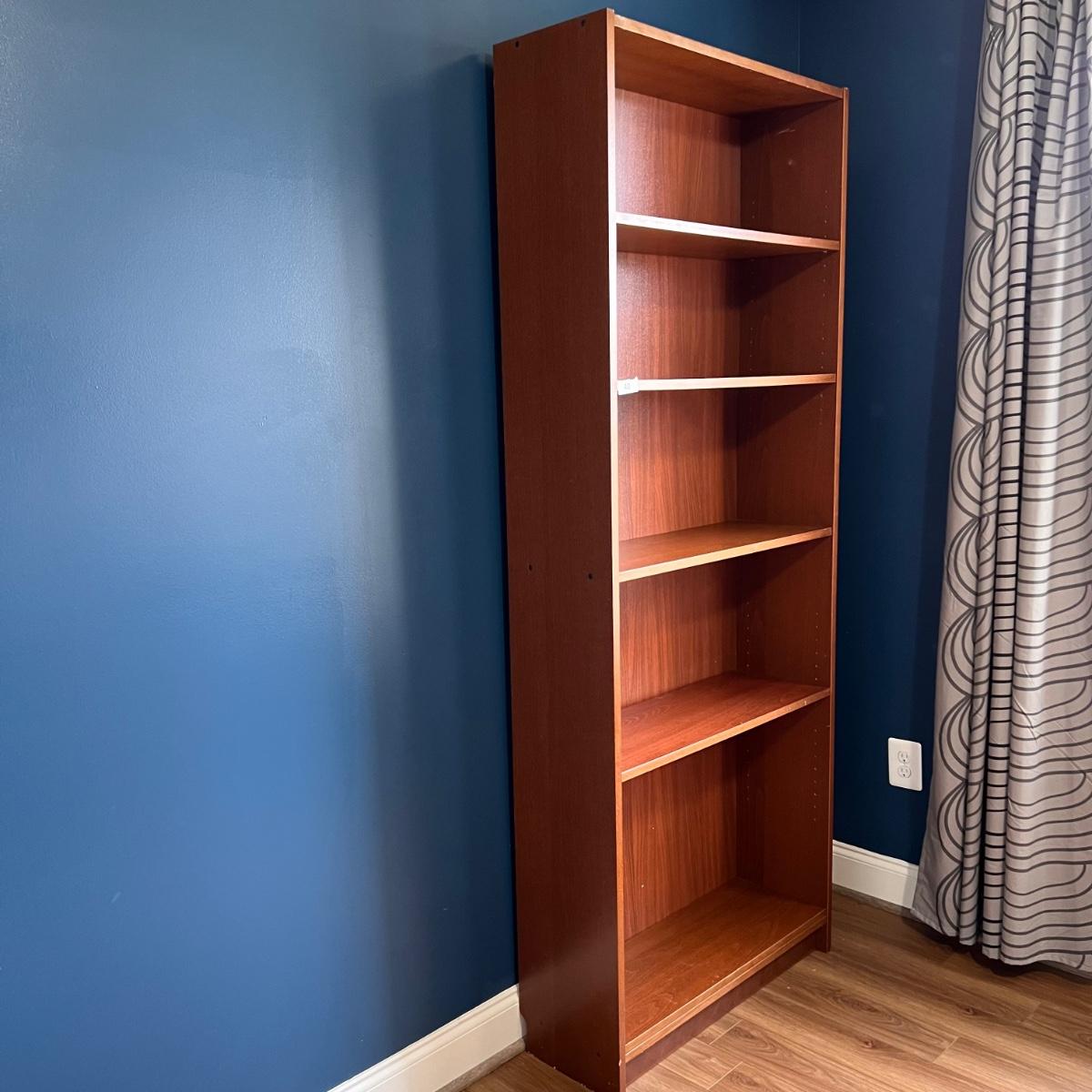 Ikea wooden book shelf. Shows some wear from age/ 31.5"x79"x11".