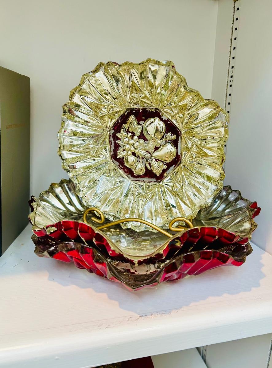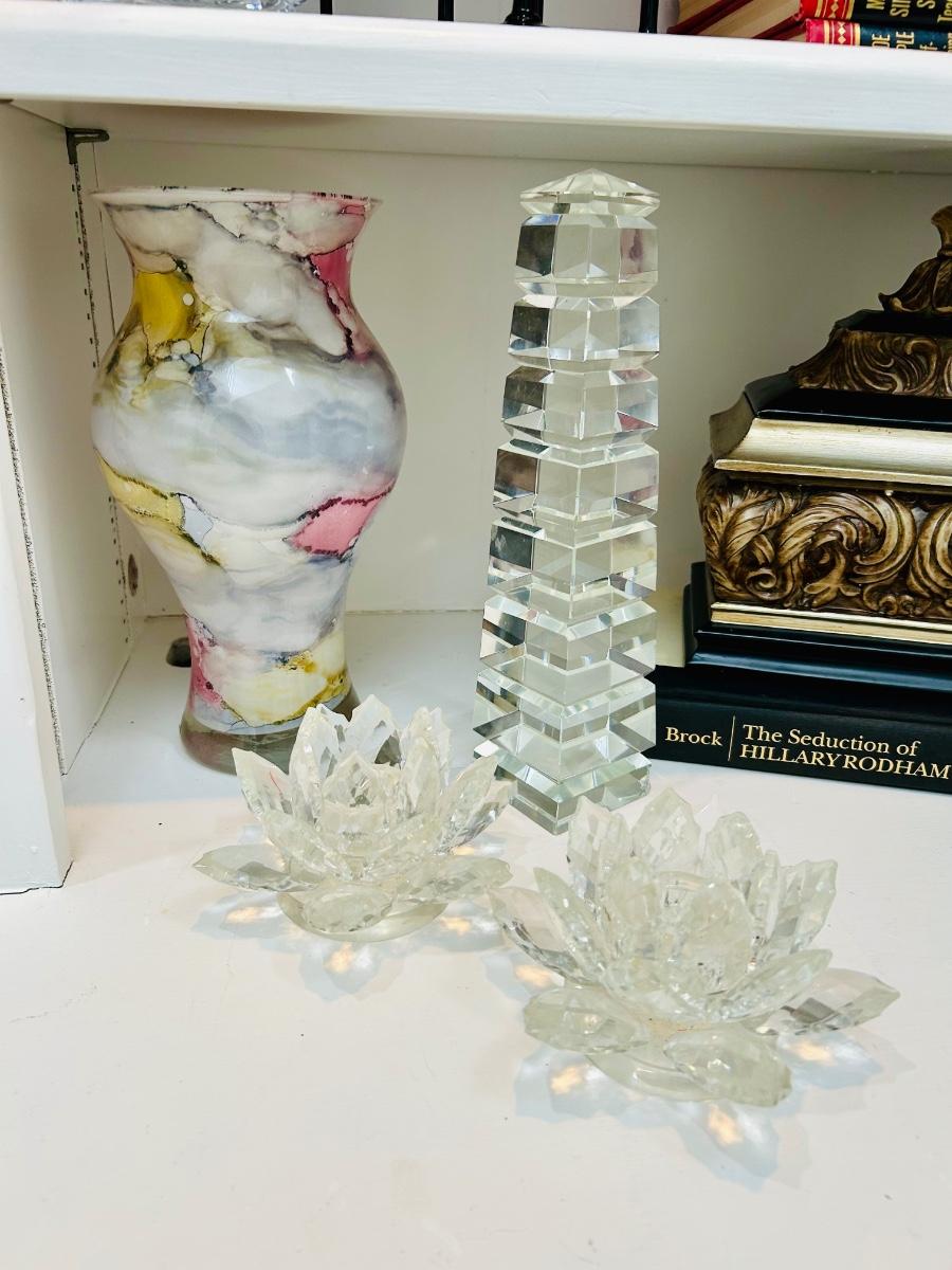 Shelf Contents - Goofus Glass, books, Statue, stemware, lamp, Crystal . Shelf is not included