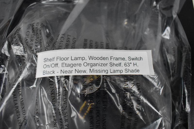 Shelf Floor Lamp, Wooden Frame, Switch On/Off, Etagere Organizer Shelf, 63" H, Black - Near New, Missing Lamp Shade