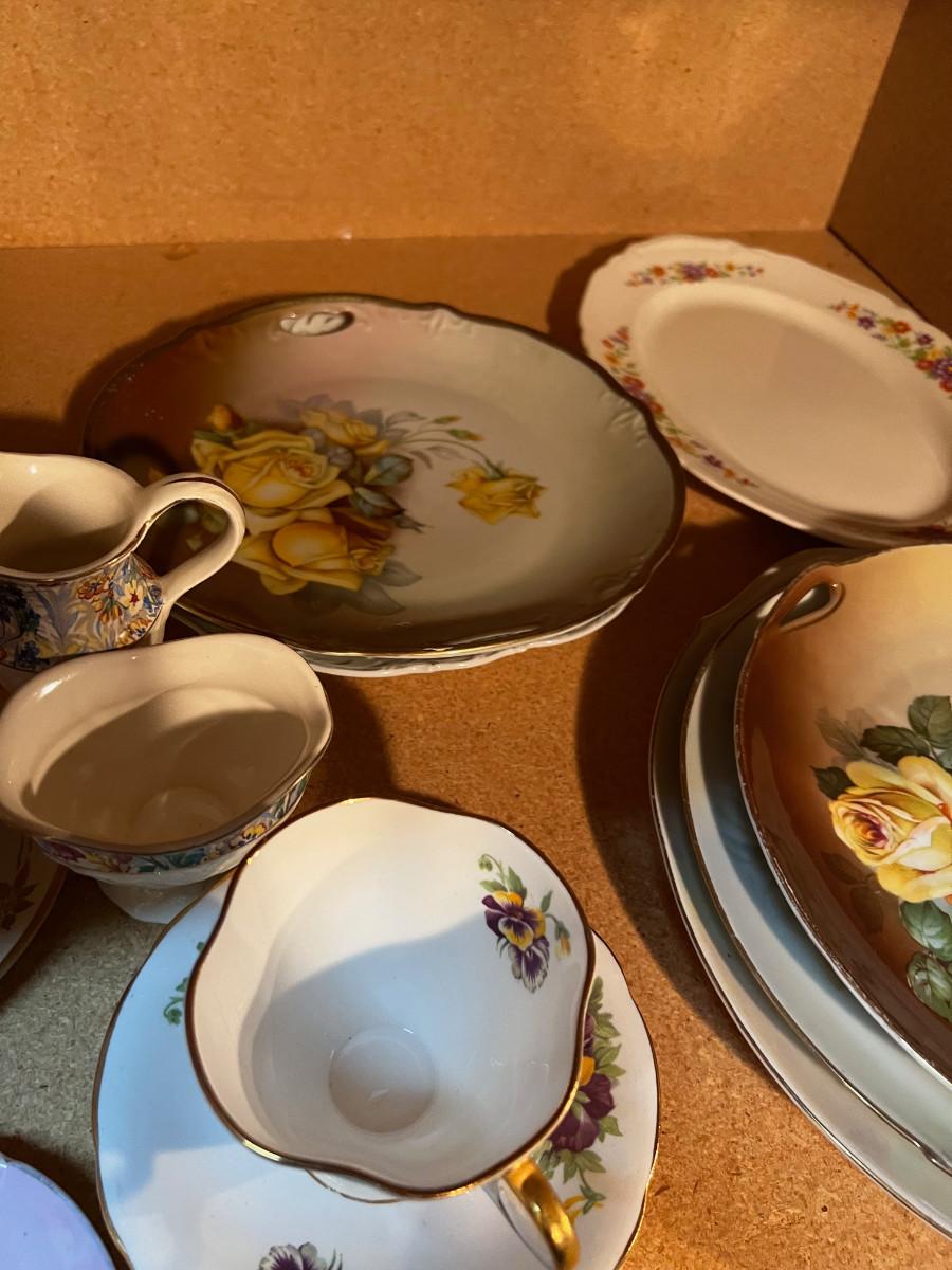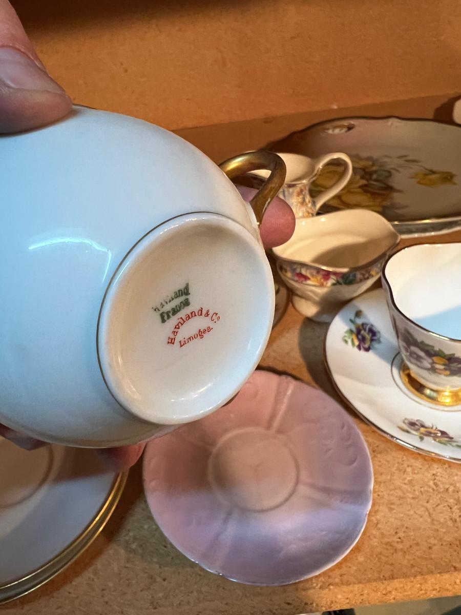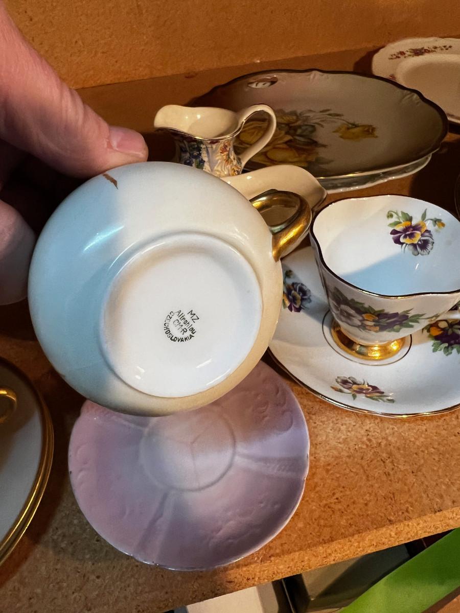 Shelf full of Mixed China; Tea cup, Cream & Sugar Plates etc.