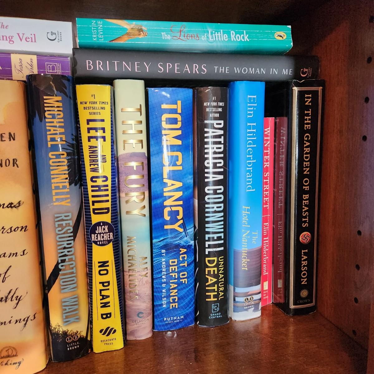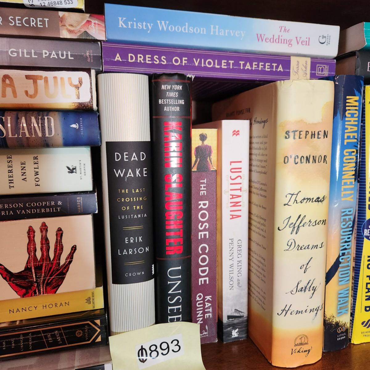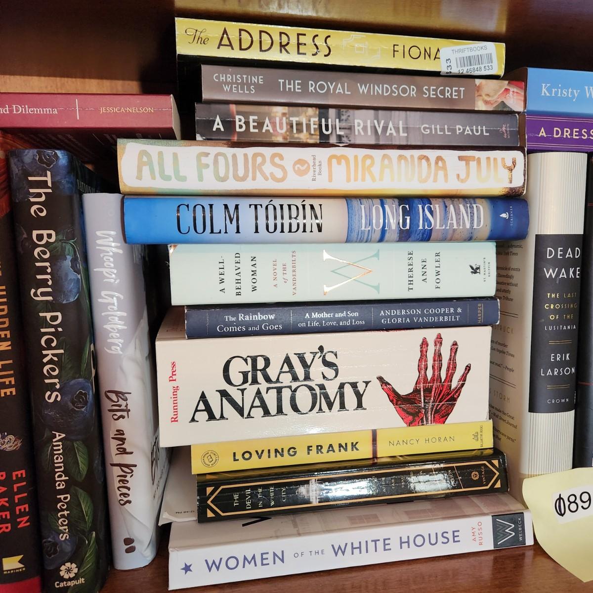 Shelf Lot of Books Gray's Anatomy Tom Clancy, Britney Spears Lusitania
